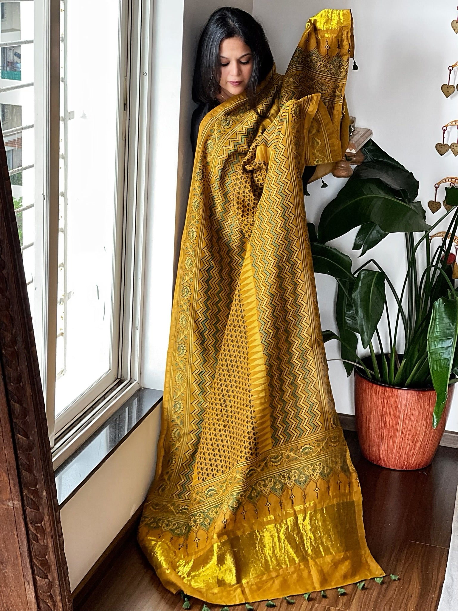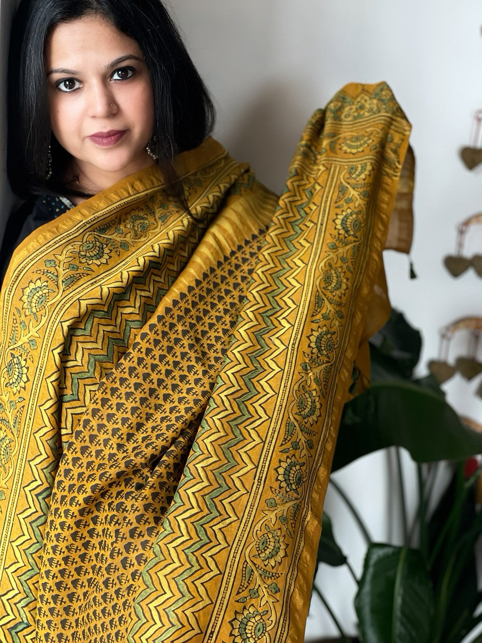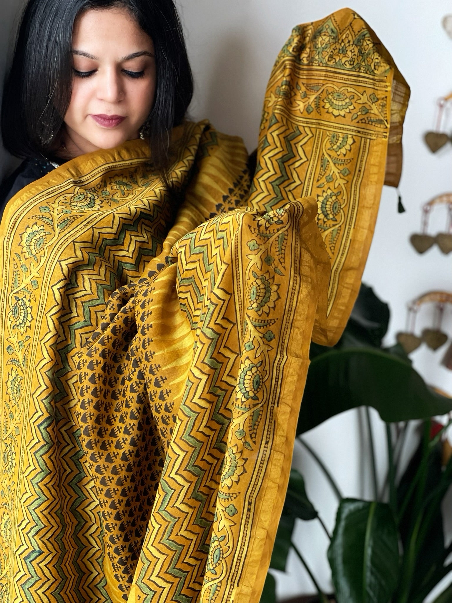 Mustard Ajrakh Handblock Printed Dupatta on Chanderi Silk