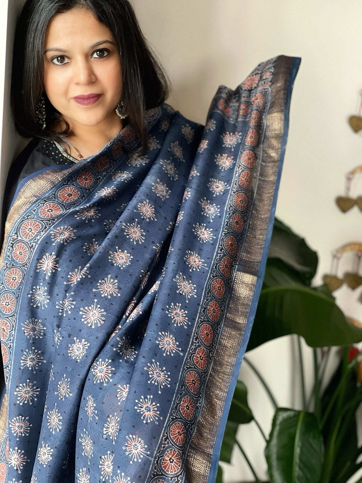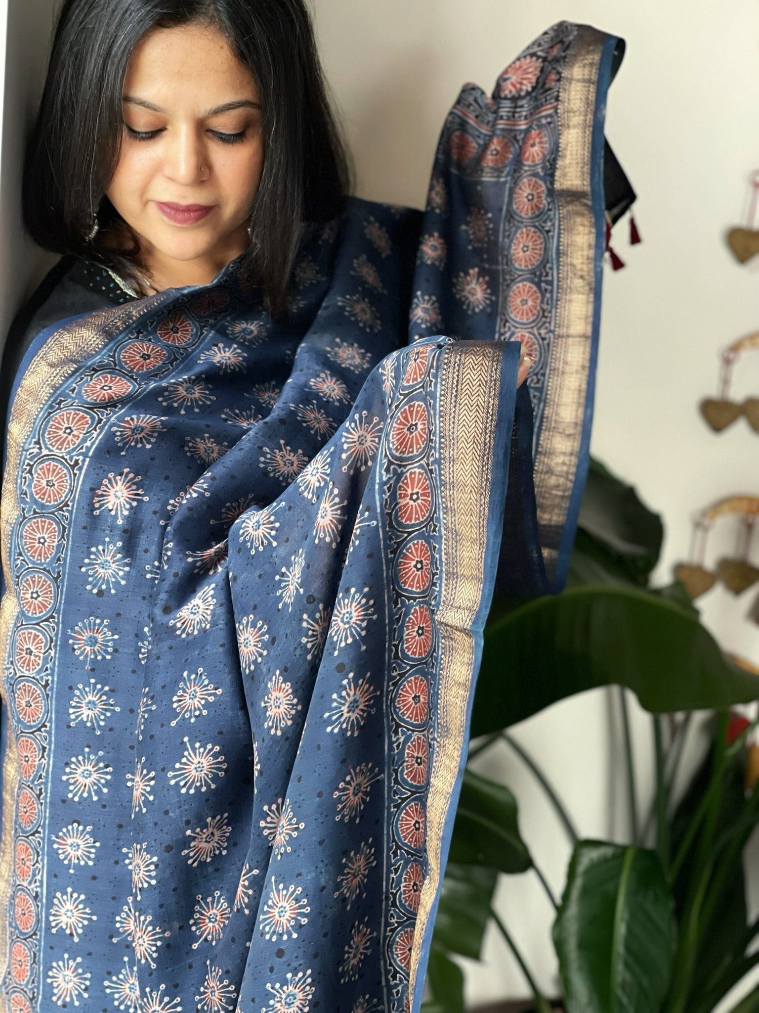 Expertly crafted from 100% pure Chanderi silk, this Ajrakh handblock printed dupatta showcases the stunning beauty of traditional Indian textiles. The intricate handblock print adds a touch of sophistication and elegance to any outfit. Elevate your wardrobe with this luxurious and versatile piece!