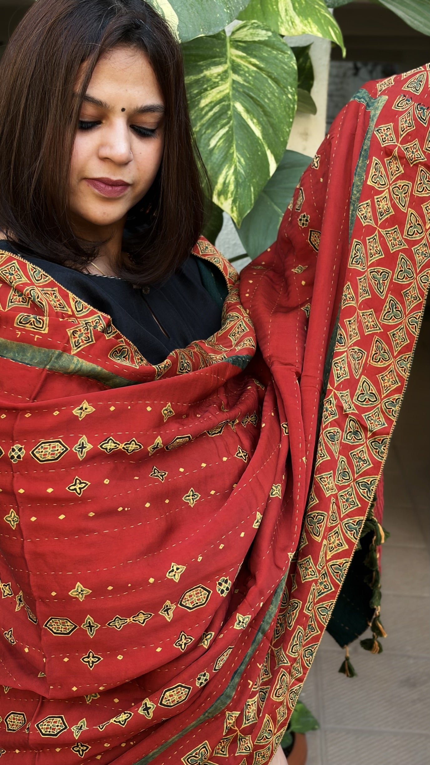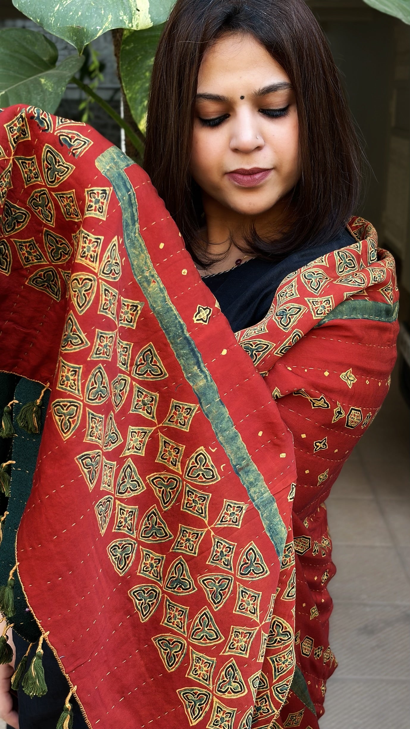 • Craft: Ajrakh Handblock Printed with Kantha Stitch Handwork