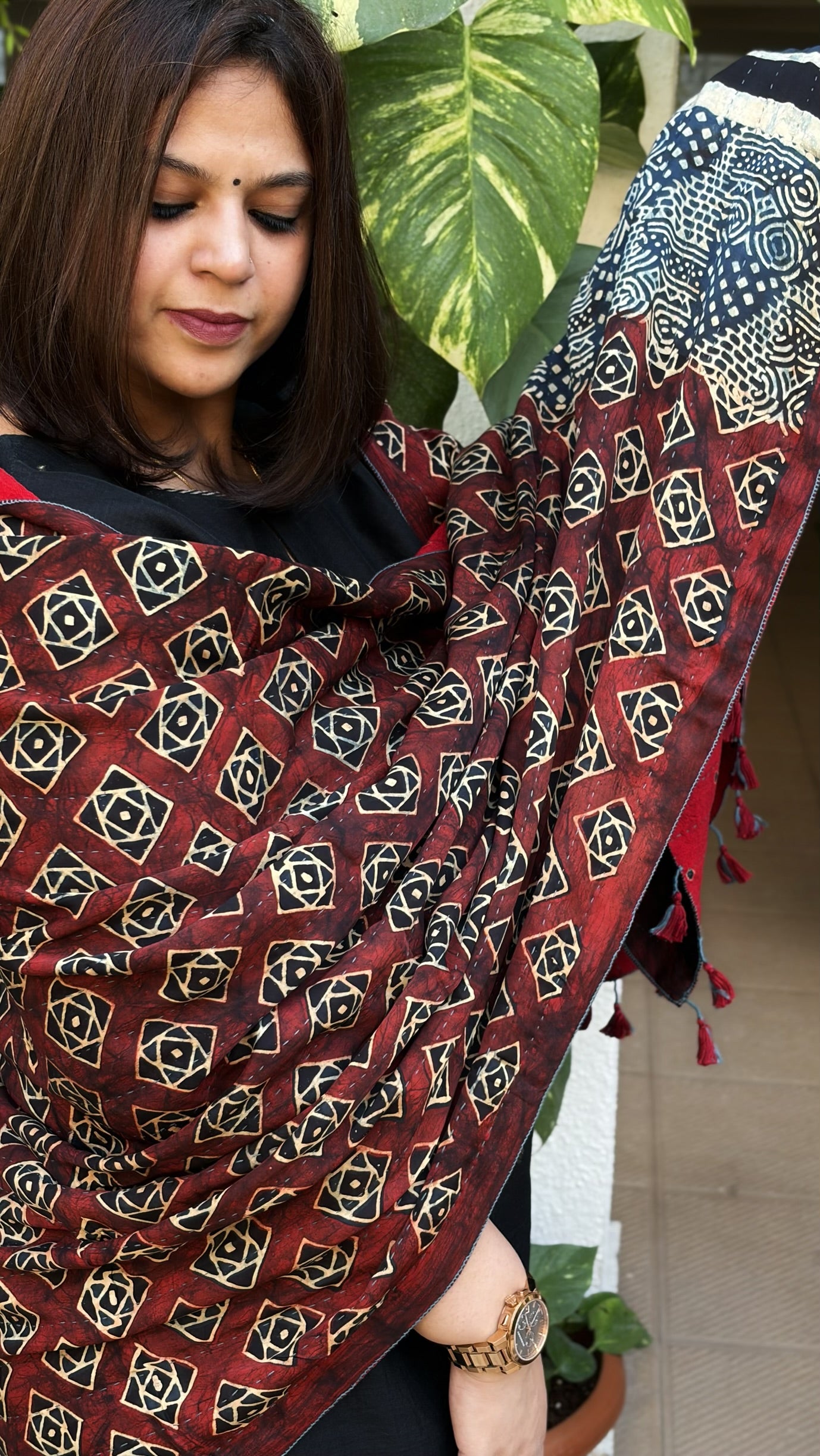 • Craft: Ajrakh Handblock Printed with Kantha Stitch Handwork