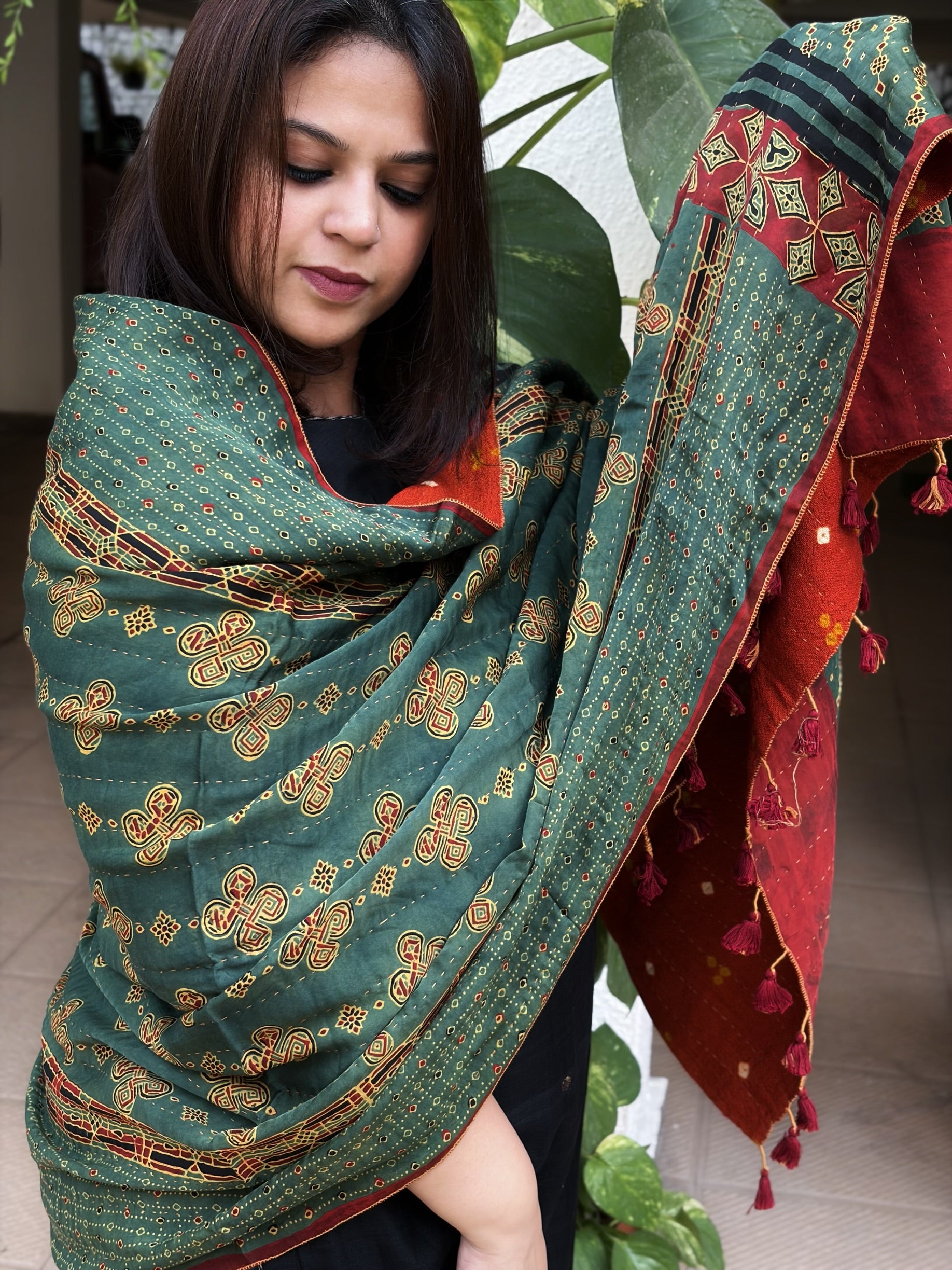 • Craft: Ajrakh Handblock Printed with Kantha Stitch Handwork