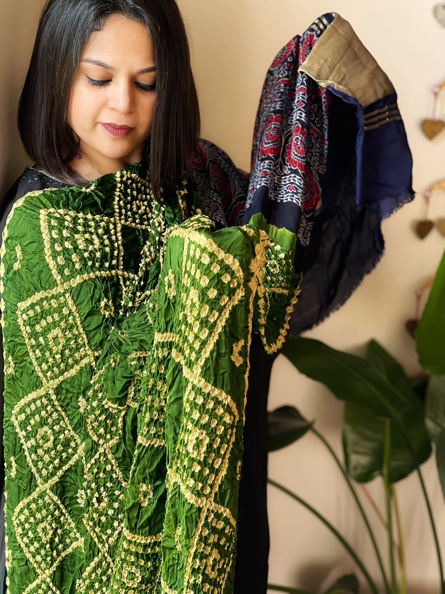 • Craft: Handmade Bandhani with Ajrakh Handblock Print