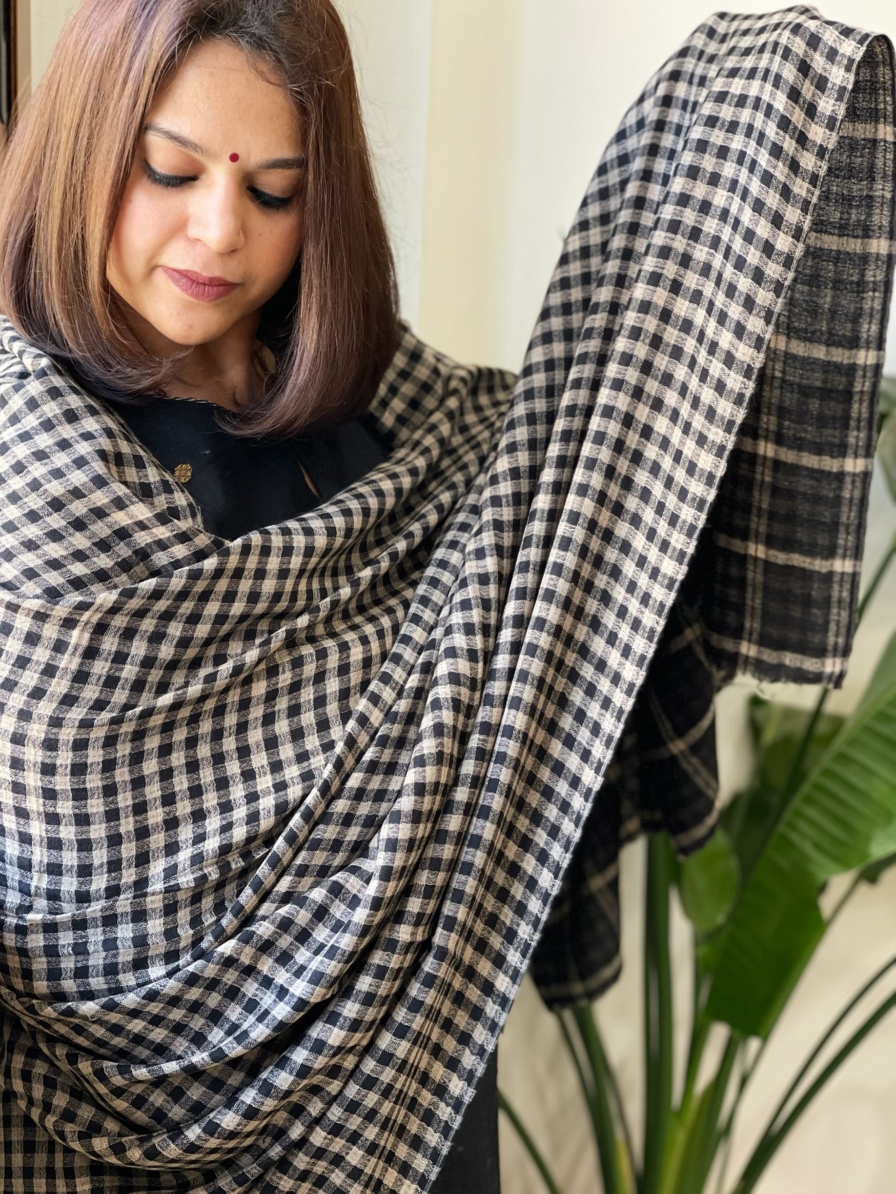 Experience a luxurious blend of warmth and style with our gorgeous woven Pashmina Check Design Shawl Made from pure wool, this shawl are not only warm and cosy, but also lightweight and perfect for winter weather. Elevate your winter outfits with the intricate zari detailing.