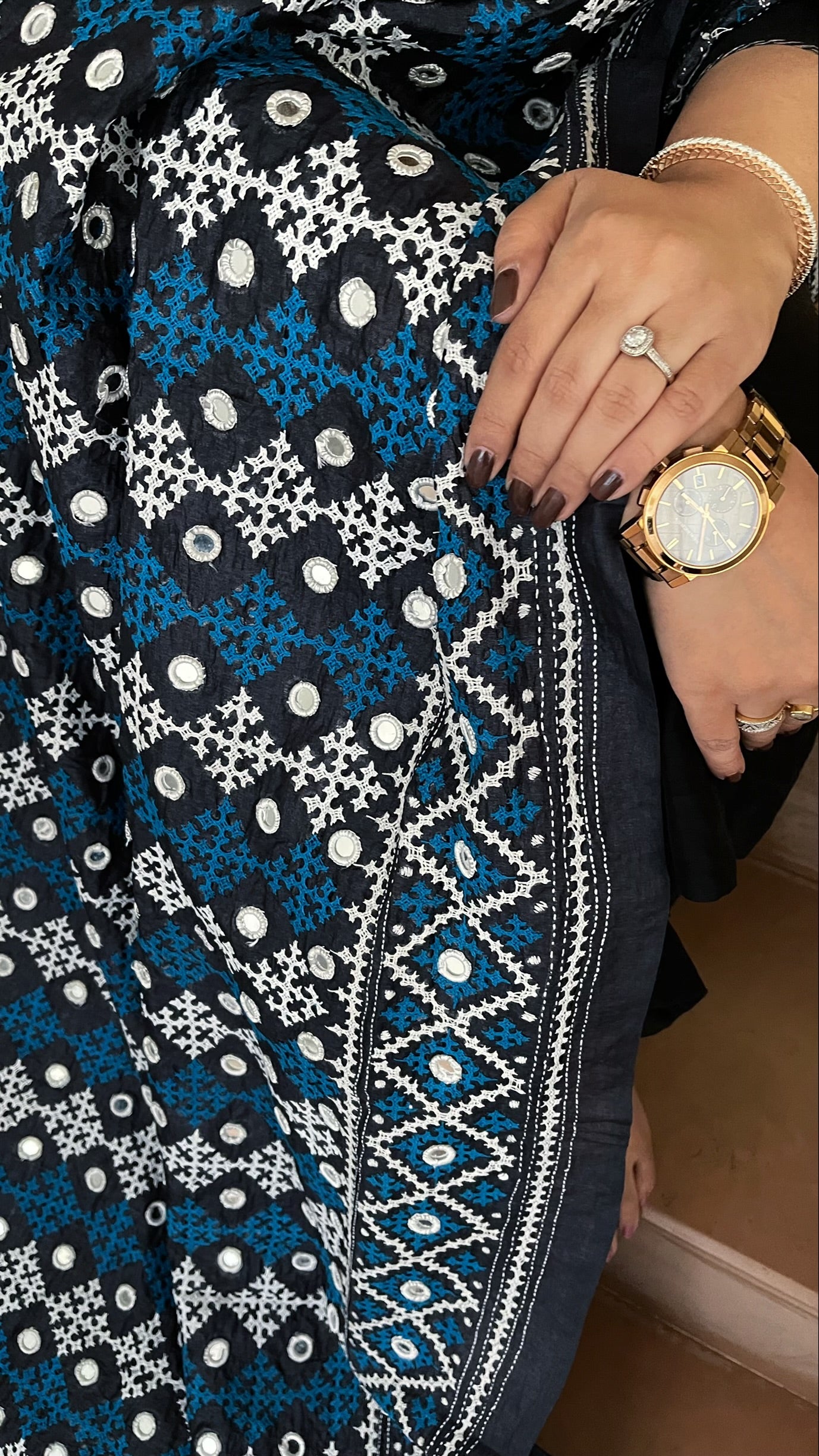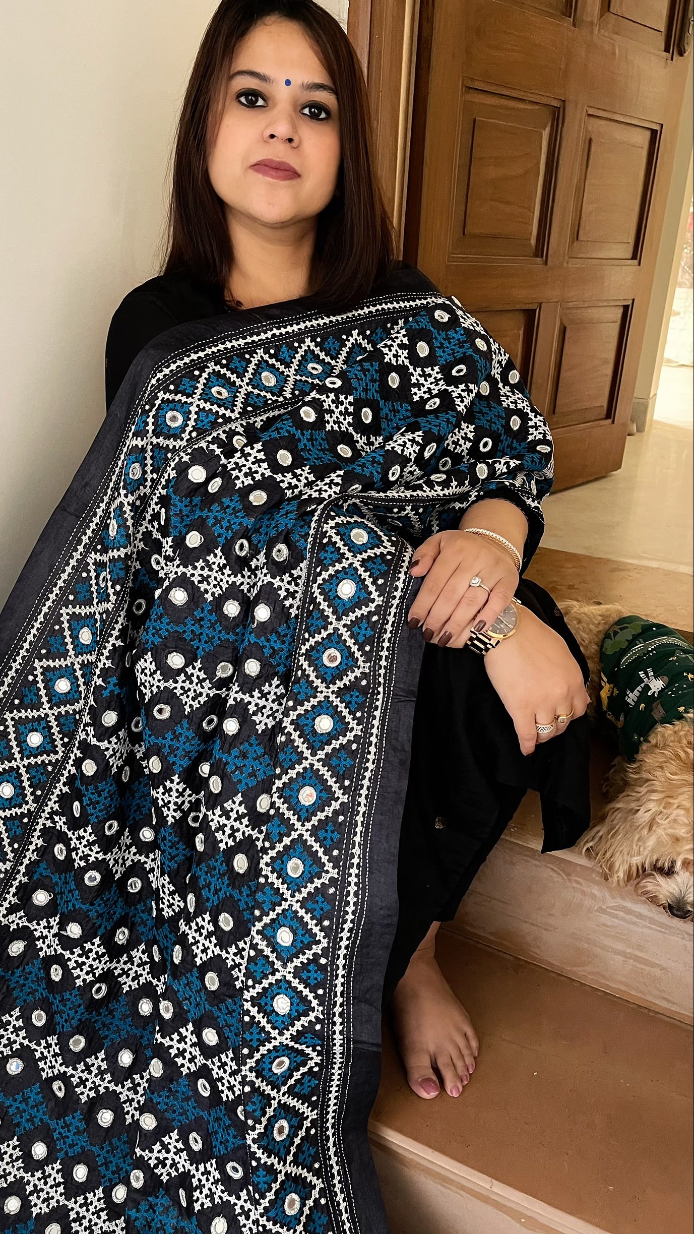 This Handmade Sindhi Kadhai Dupatta in Pure Silk is crafted with precision and care by skilled artisans. Made with pure Tussar silk and real mirror handwork, it is not only a piece of art but also a unique addition to your wardrobe. Perfect for special occasions, this dupatta will elevate your style and make you stand out.