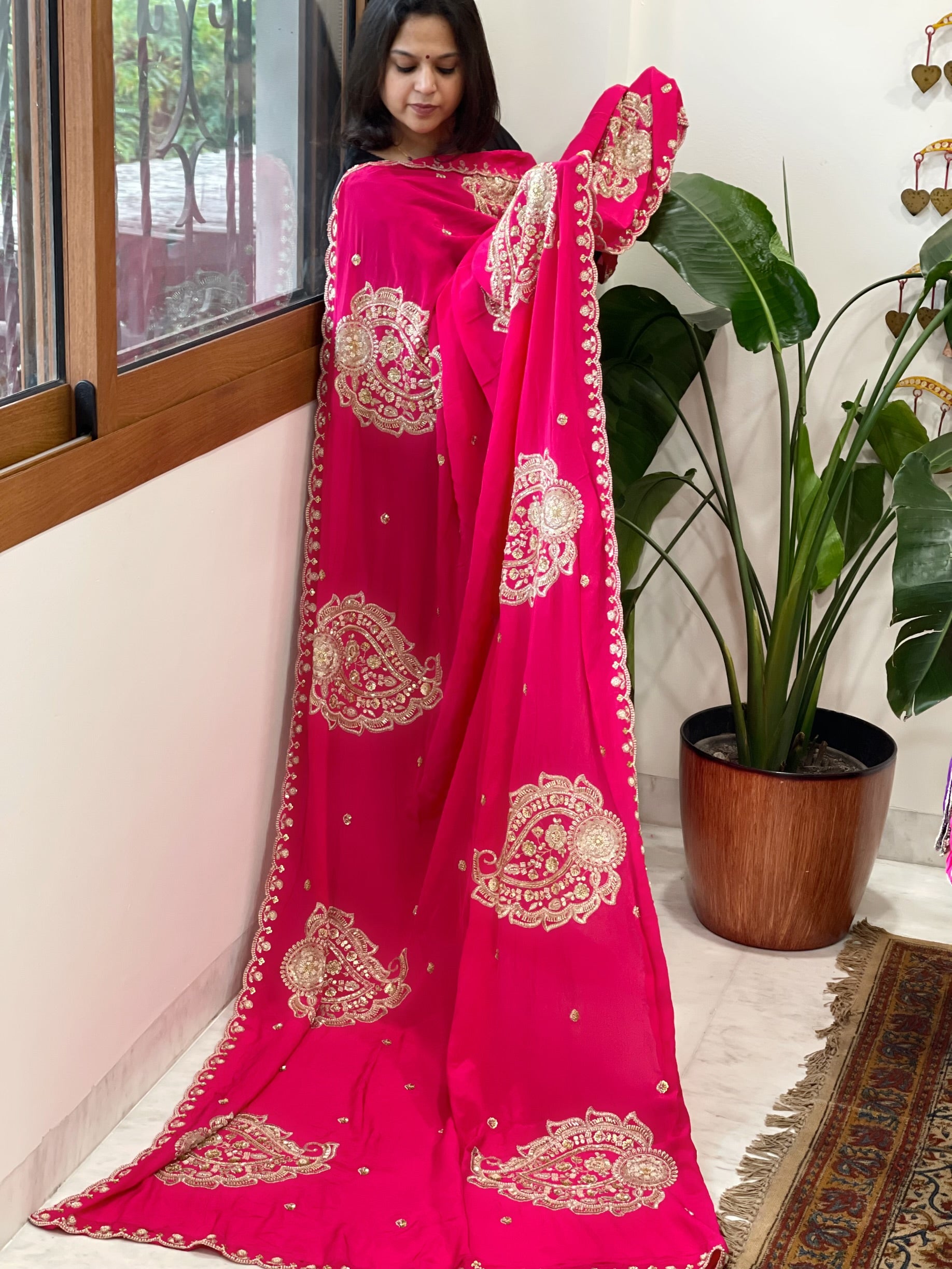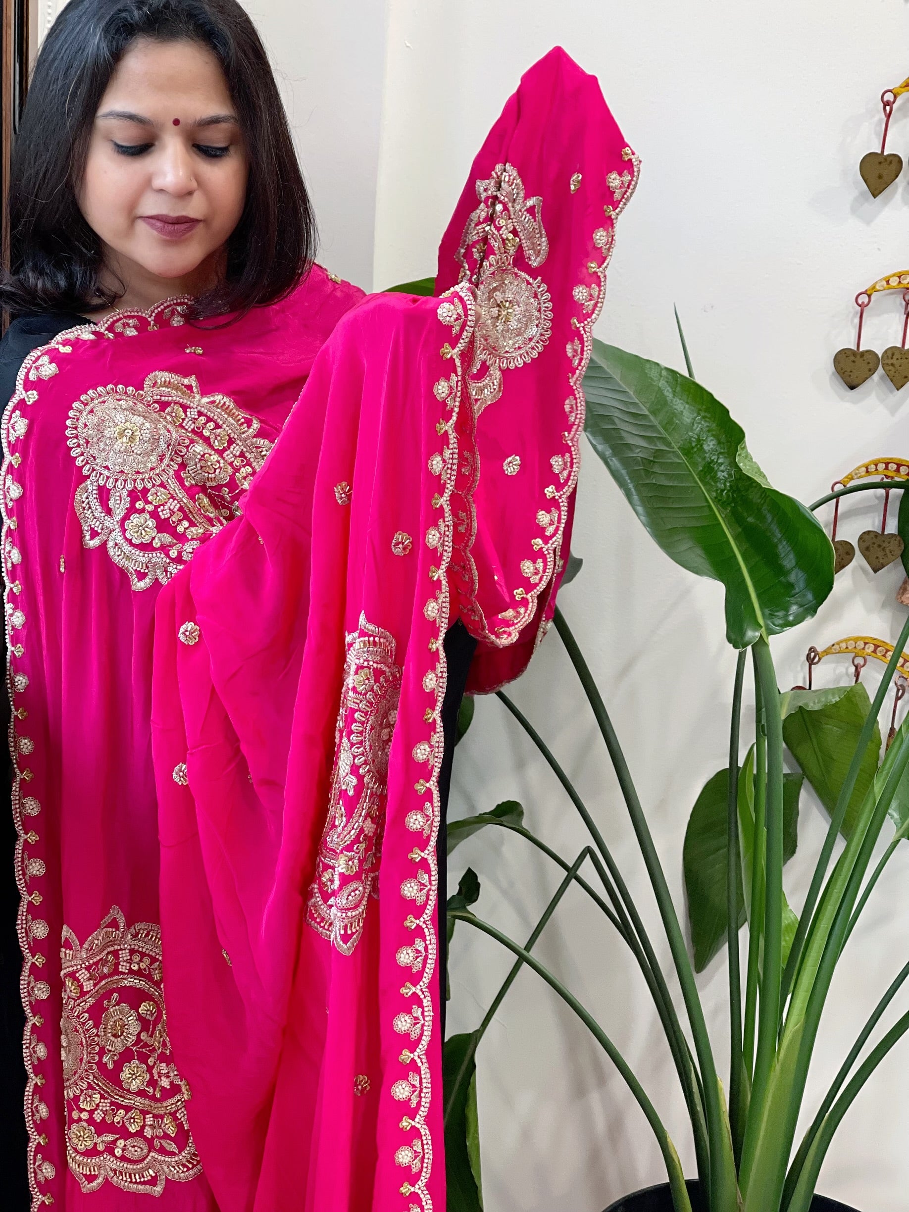 • Craft: Crepe Dupatta with Gold Thread and Sequin Embroidery