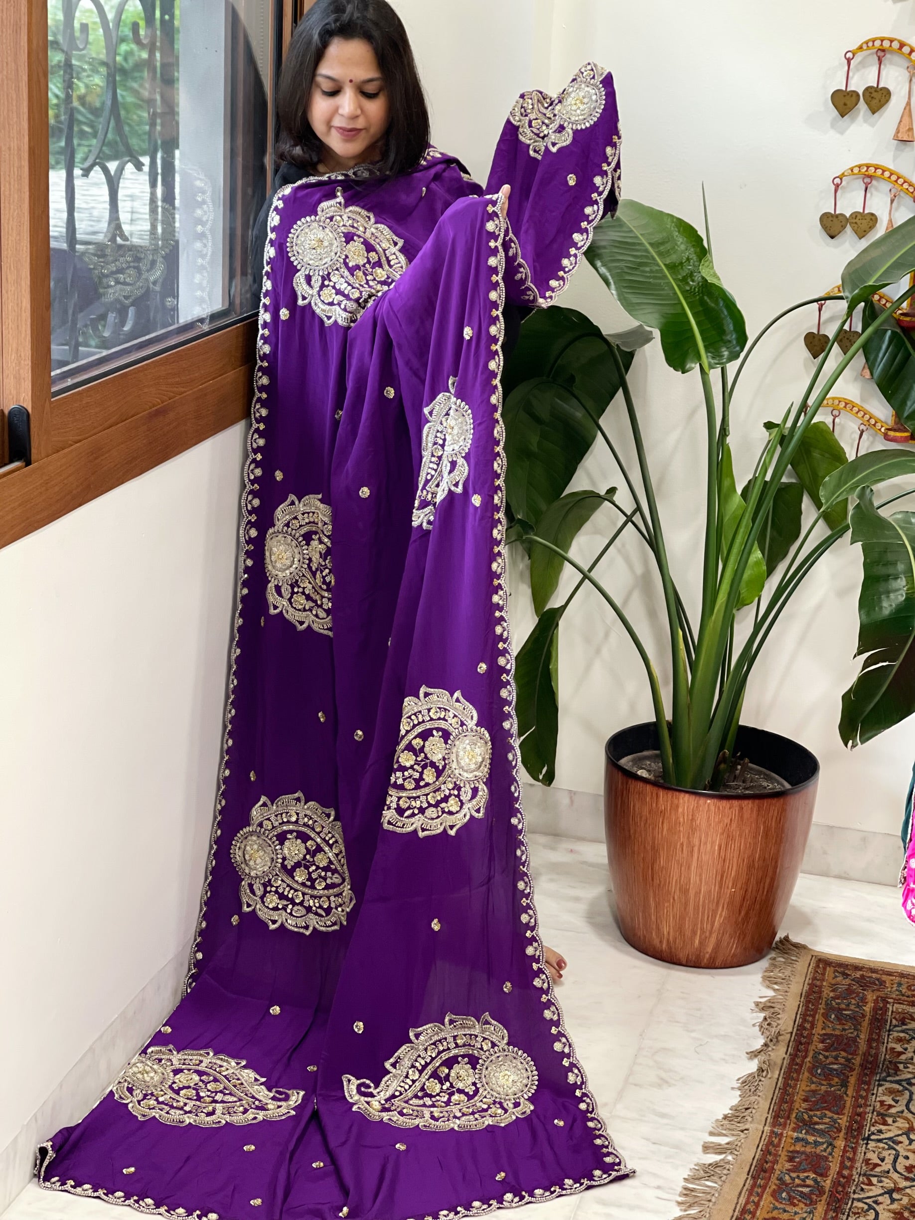 Purple Crepe Dupatta with Pearl, Cut Daana, Gold Thread & Sequin Embroidery