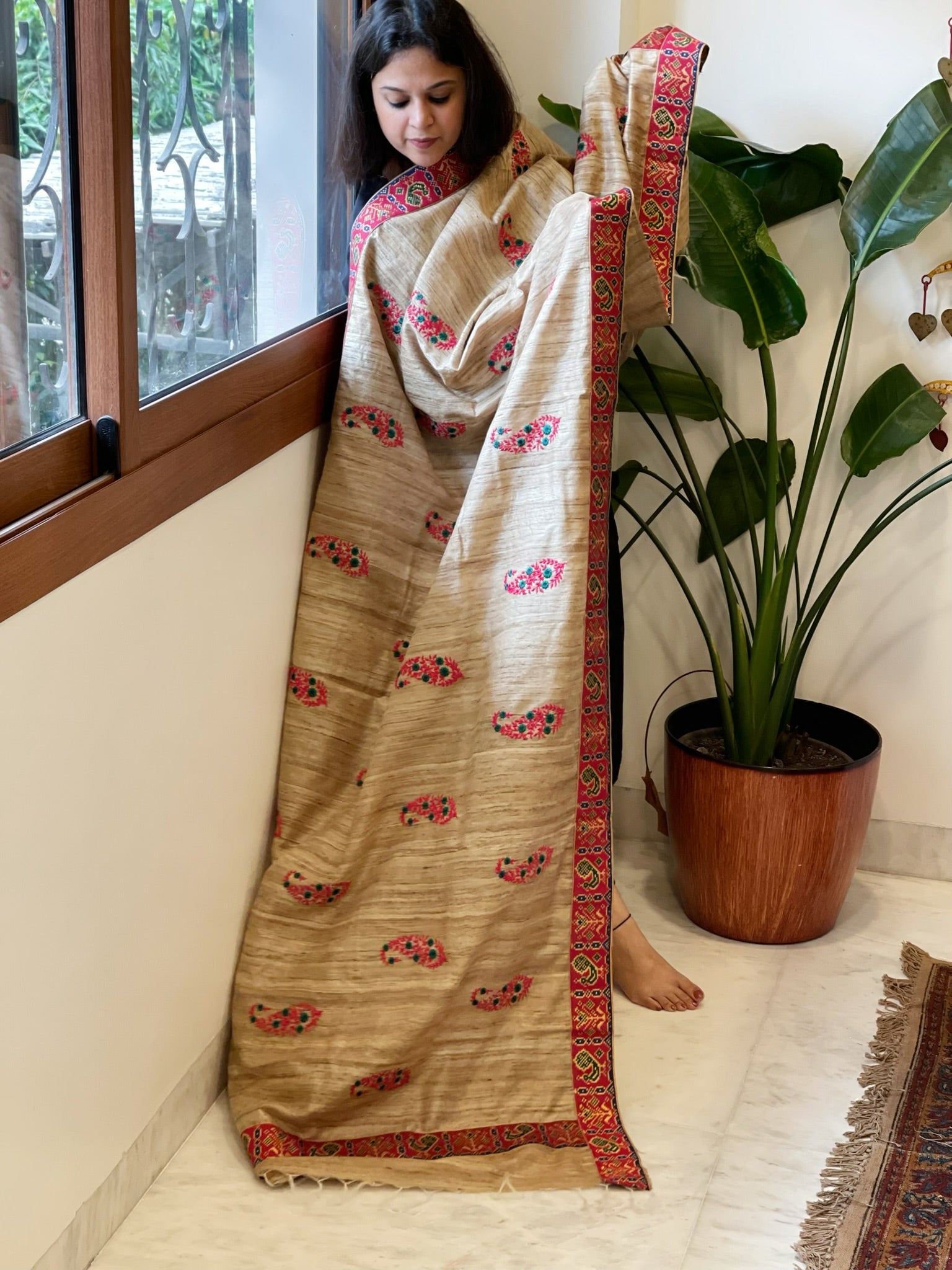 Geecha Silk Dupatta with Thread Embroidery & Patola Border