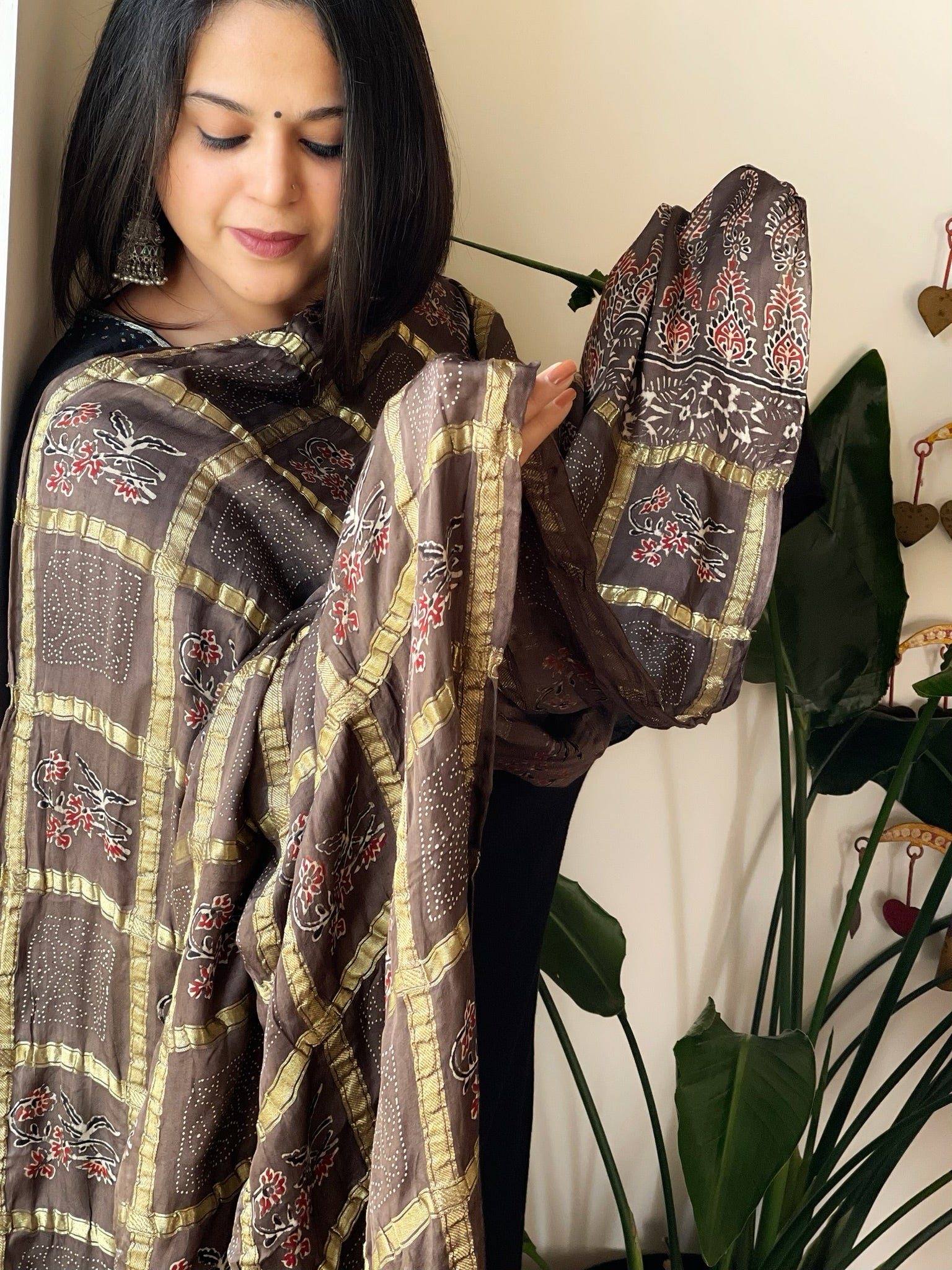 Kashish Gharchola Dupatta with Ajrakh Handblock Print and Zari Pallu in Modal Silk