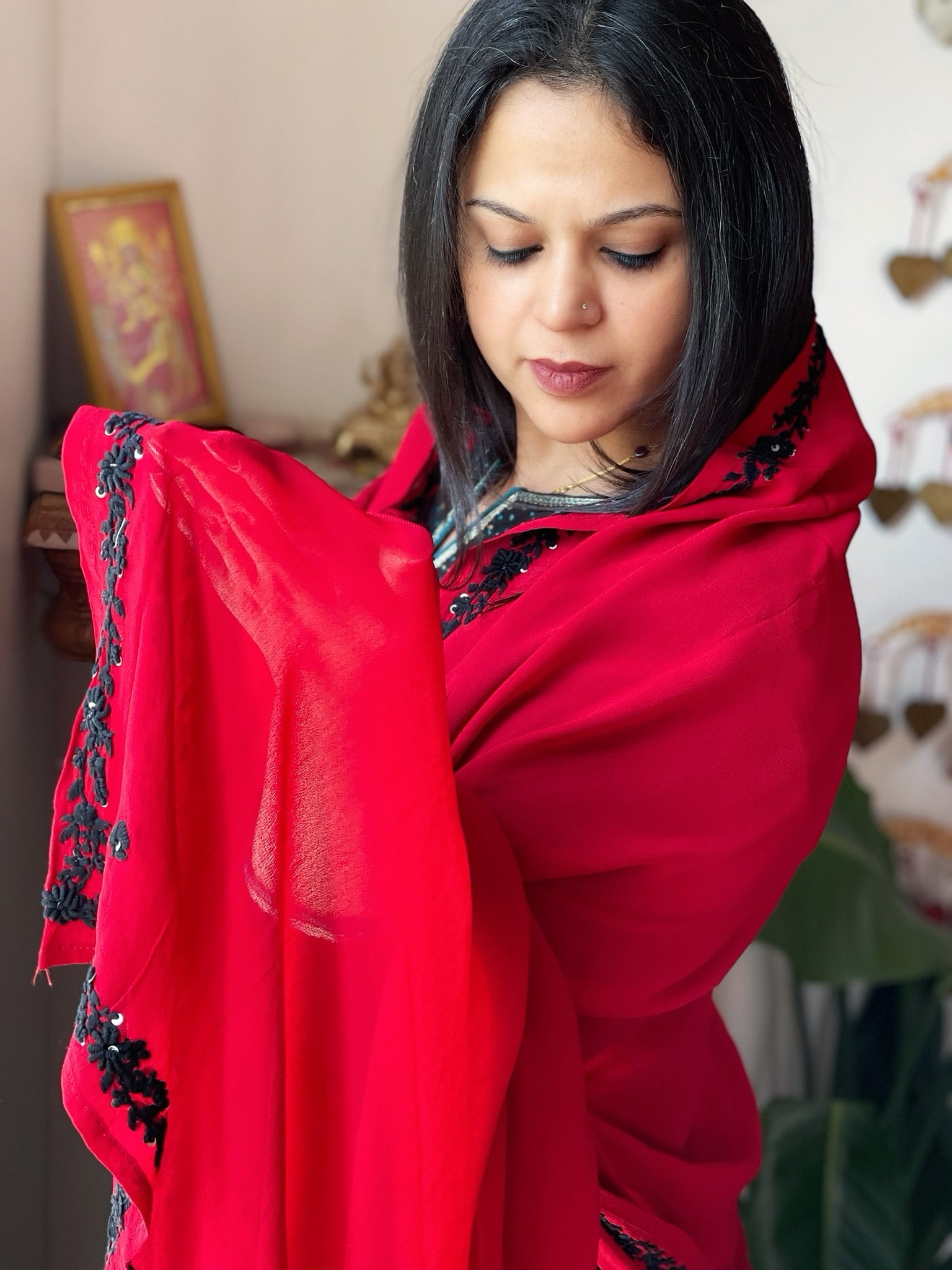 Upgrade your summer wardrobe with our Hand Embroidered Dupatta in Georgette. With intricate thread and sequin hand embroidery, this colorful and summery piece is perfect for adding a touch of elegance to any outfit.