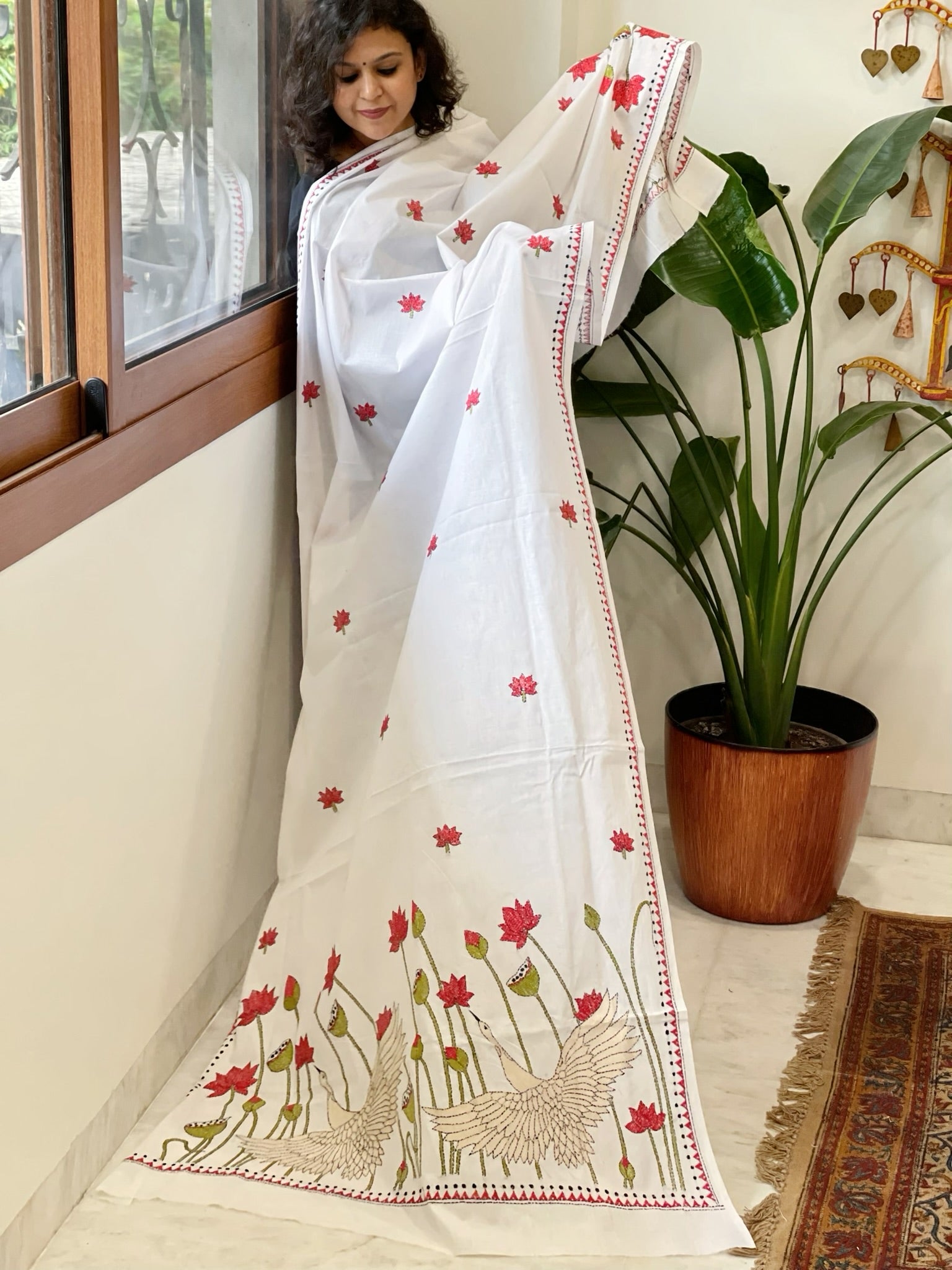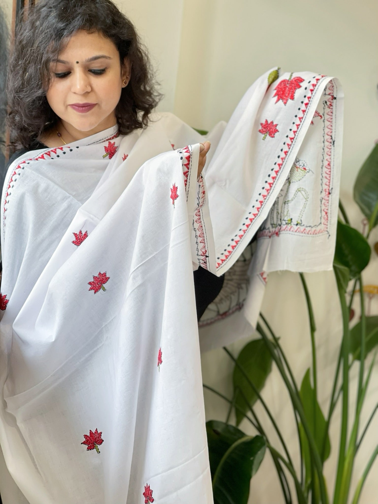 This Handmade Kantha Dupatta in Cotton is a beautiful and vibrant piece that combines the traditional art of Kantha embroidery with the comfort of pure cotton. Each piece is carefully crafted by hand in the heartlands of Bengal, making it a unique and special addition to your wardrobe. Perfect for adding a touch of summery elegance to any outfit.