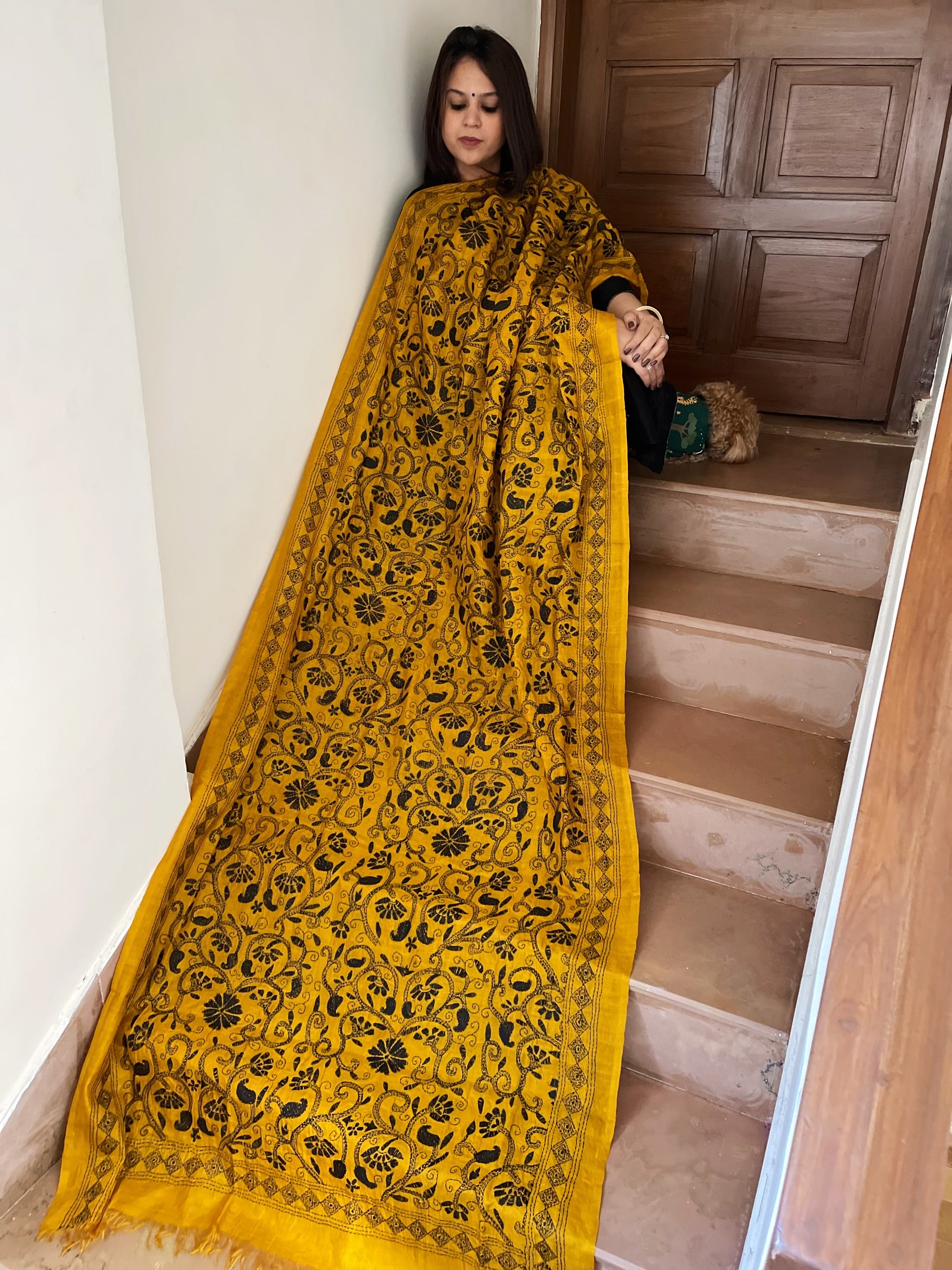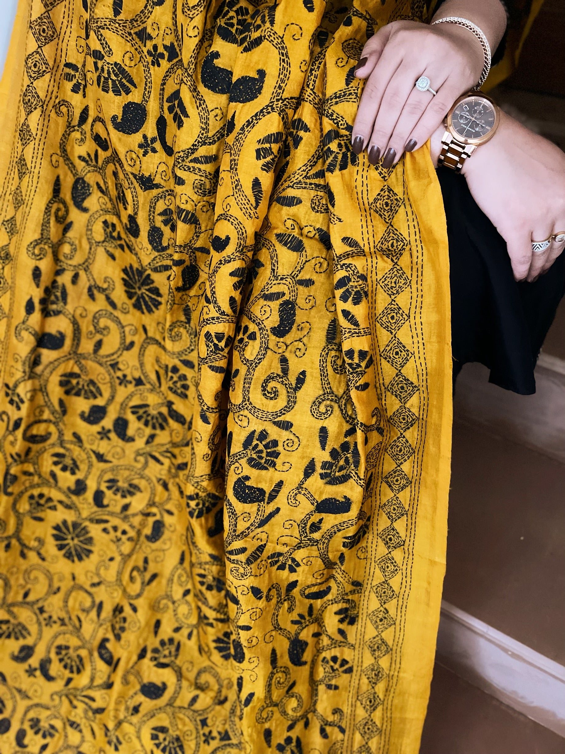Mustard Yellow Nakshi Handmade Kantha Dupatta in Silk