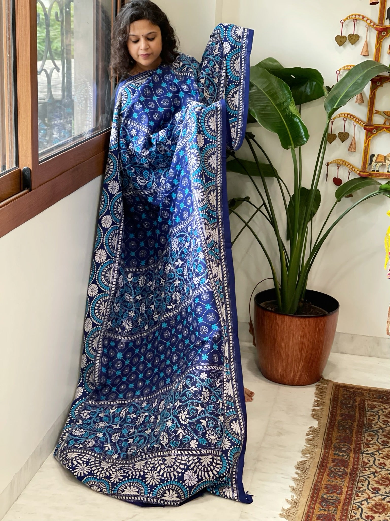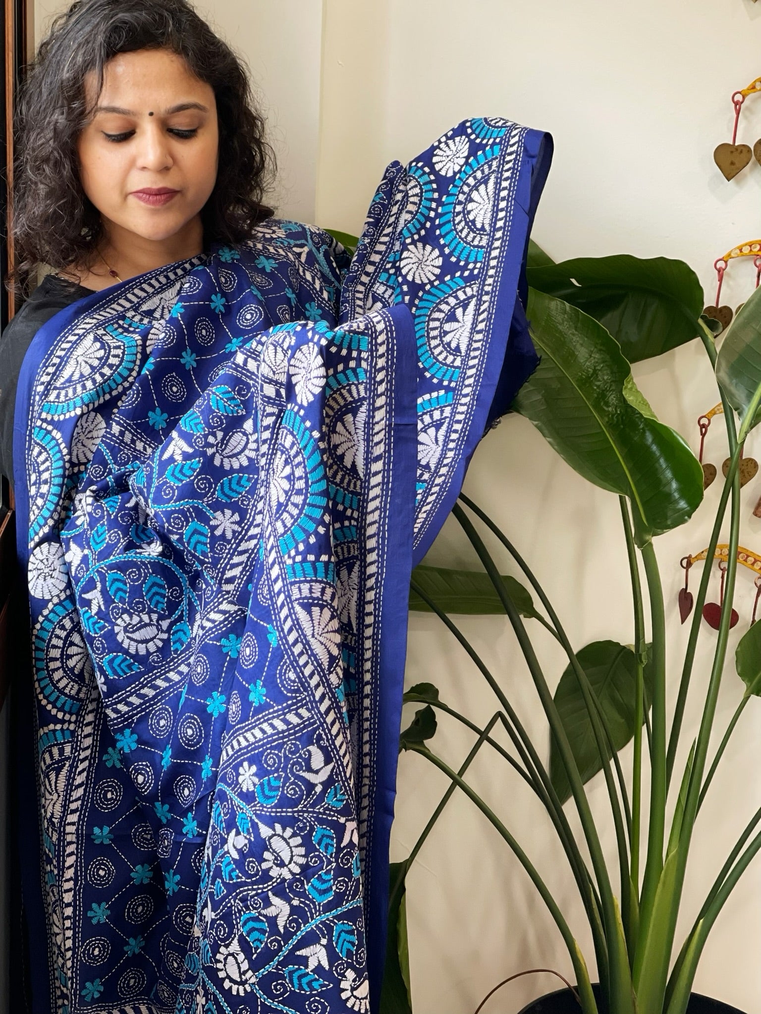 This Handmade Nakshi Kantha Dupatta in Pure Silk is crafted with precision and care by skilled artisans from West Bengal. Made with pure Bangalore silk, it is not only a piece of art but also a unique addition to your wardrobe.