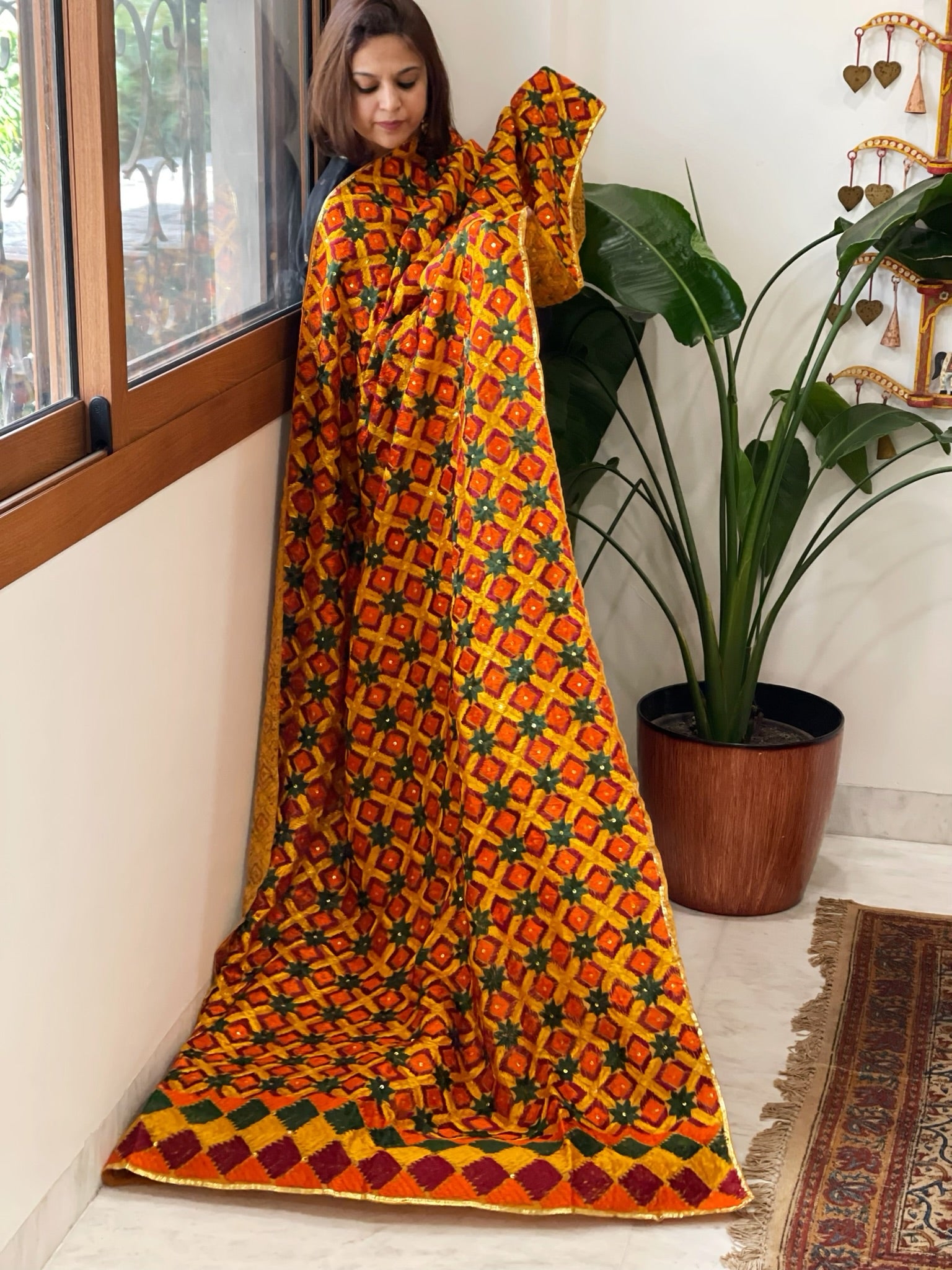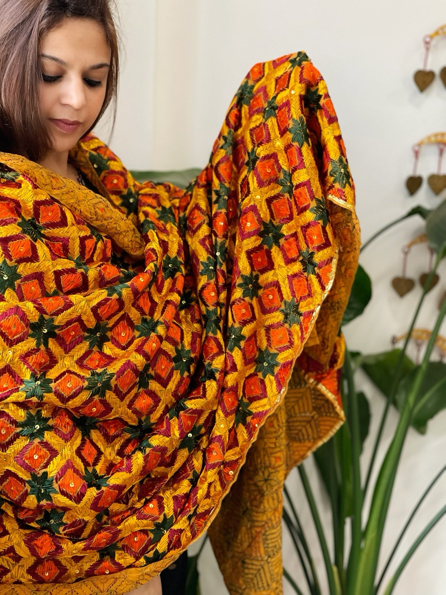 This Handmade Phulkari Dupatta is crafted in pure cotton, providing both authenticity and comfort for any occasion. Its vibrant design adds a festive touch to any outfit. Handmade with precision, these dupattas are a must-have for any fashion enthusiast.
