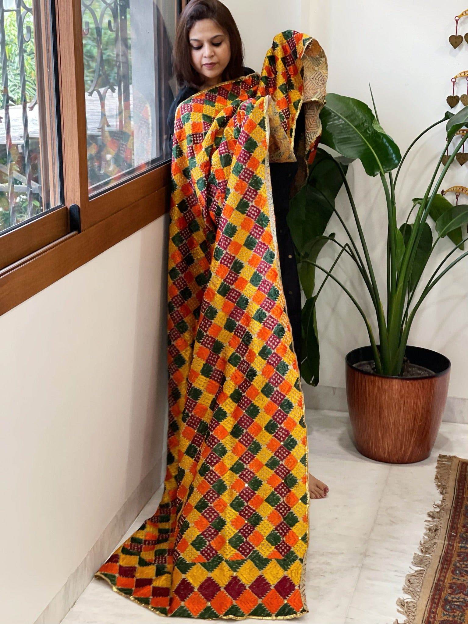 This Handmade Phulkari Dupatta is crafted in pure cotton, providing both authenticity and comfort for any occasion. Its vibrant design adds a festive touch to any outfit. Handmade with precision, these dupattas are a must-have for any fashion enthusiast.