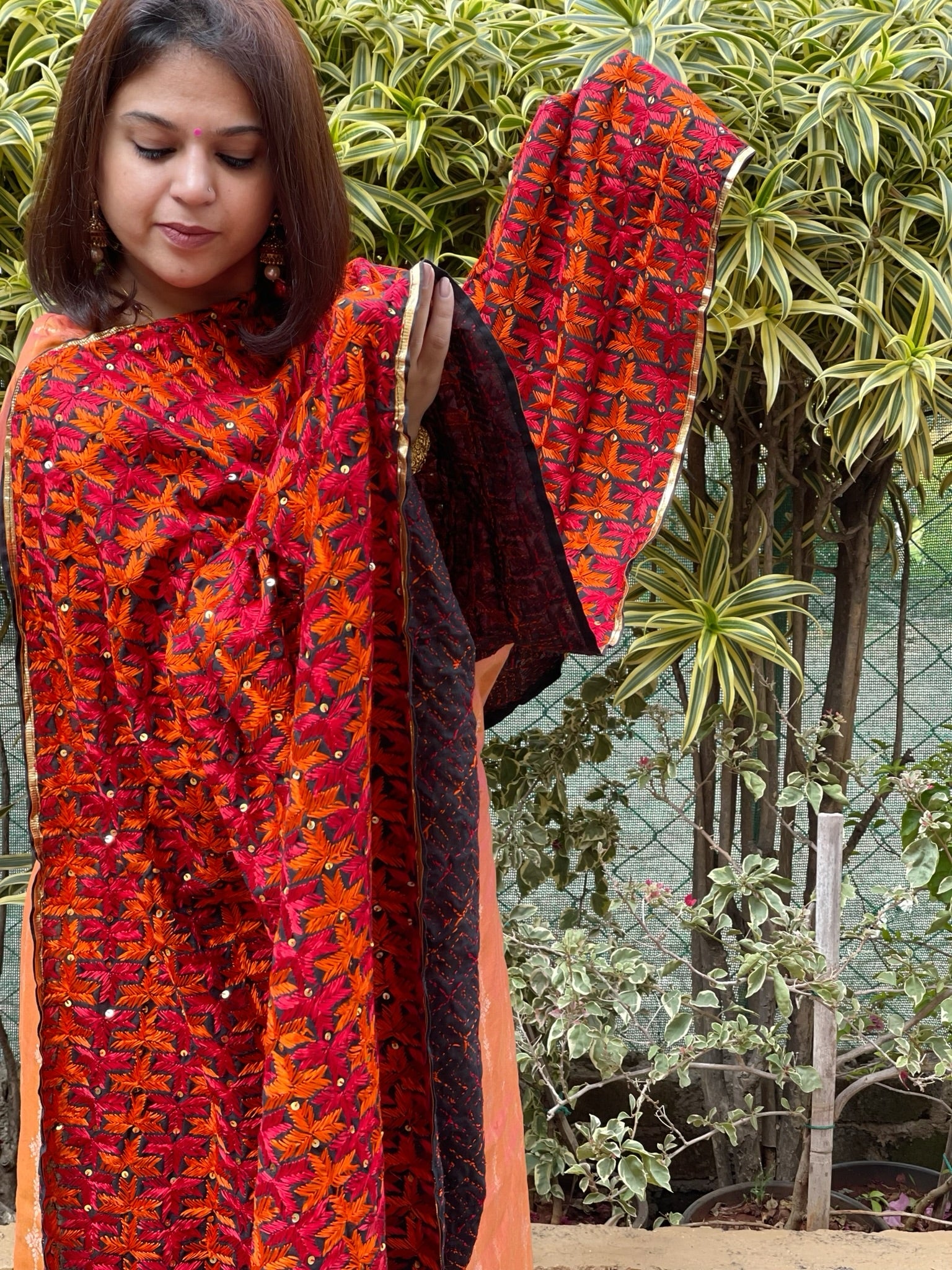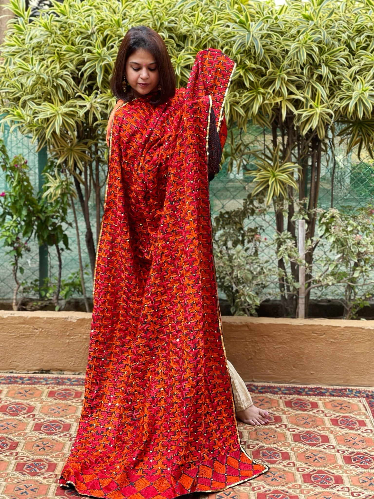 This Handmade Phulkari Dupatta is crafted in pure cotton, providing both authenticity and comfort for any occasion. Its vibrant design adds a festive touch to any outfit. Handmade with precision, these dupattas are a must-have for any fashion enthusiast.