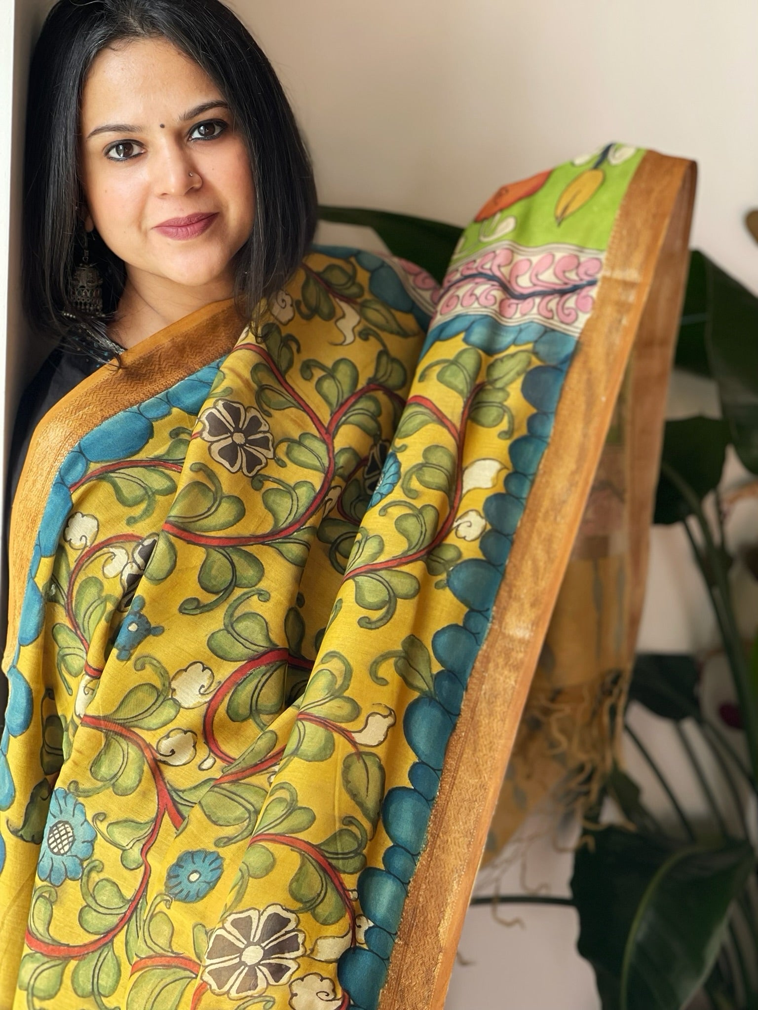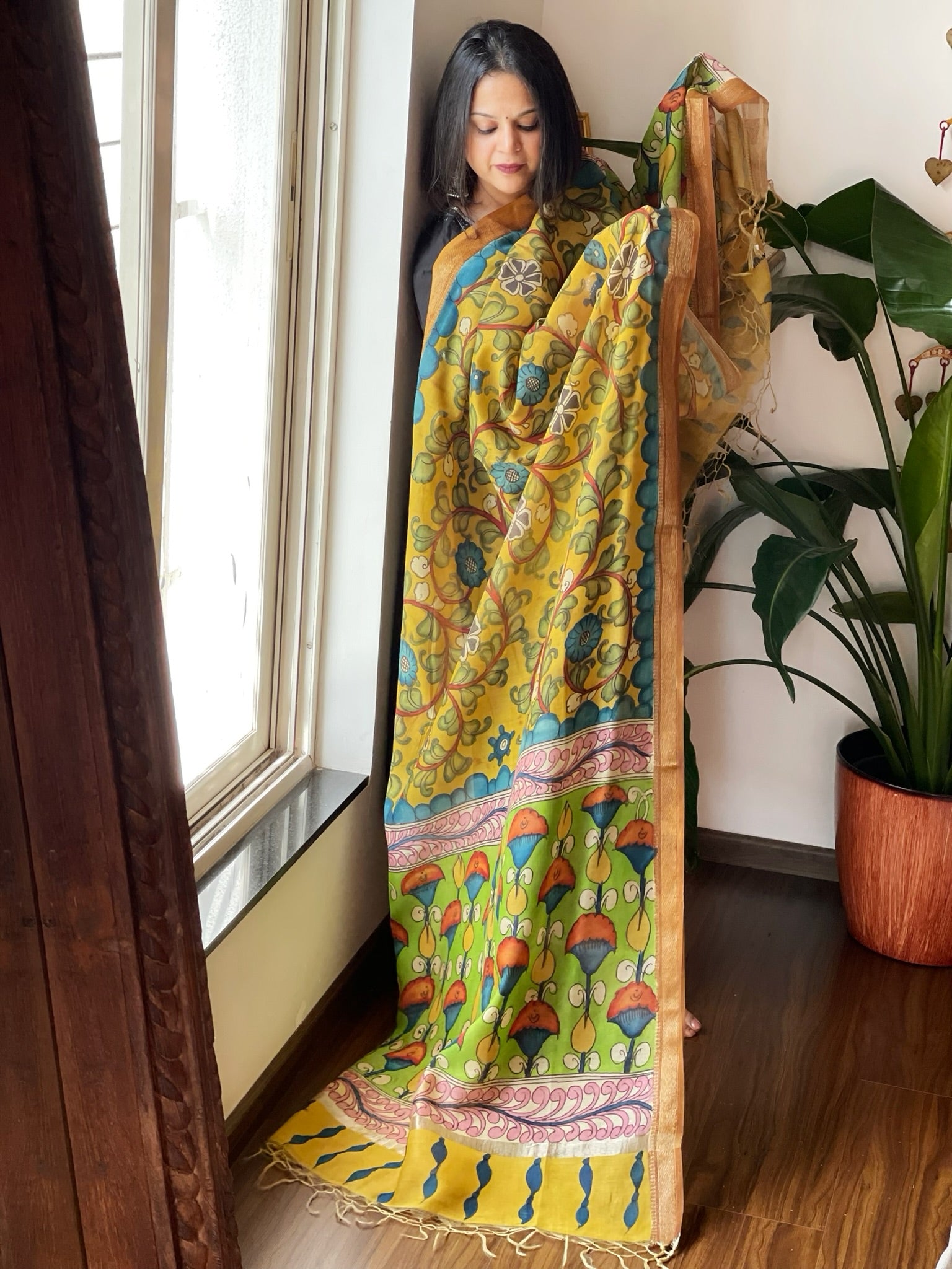 Handpainted Kalamkari Dupatta in Chanderi Silk