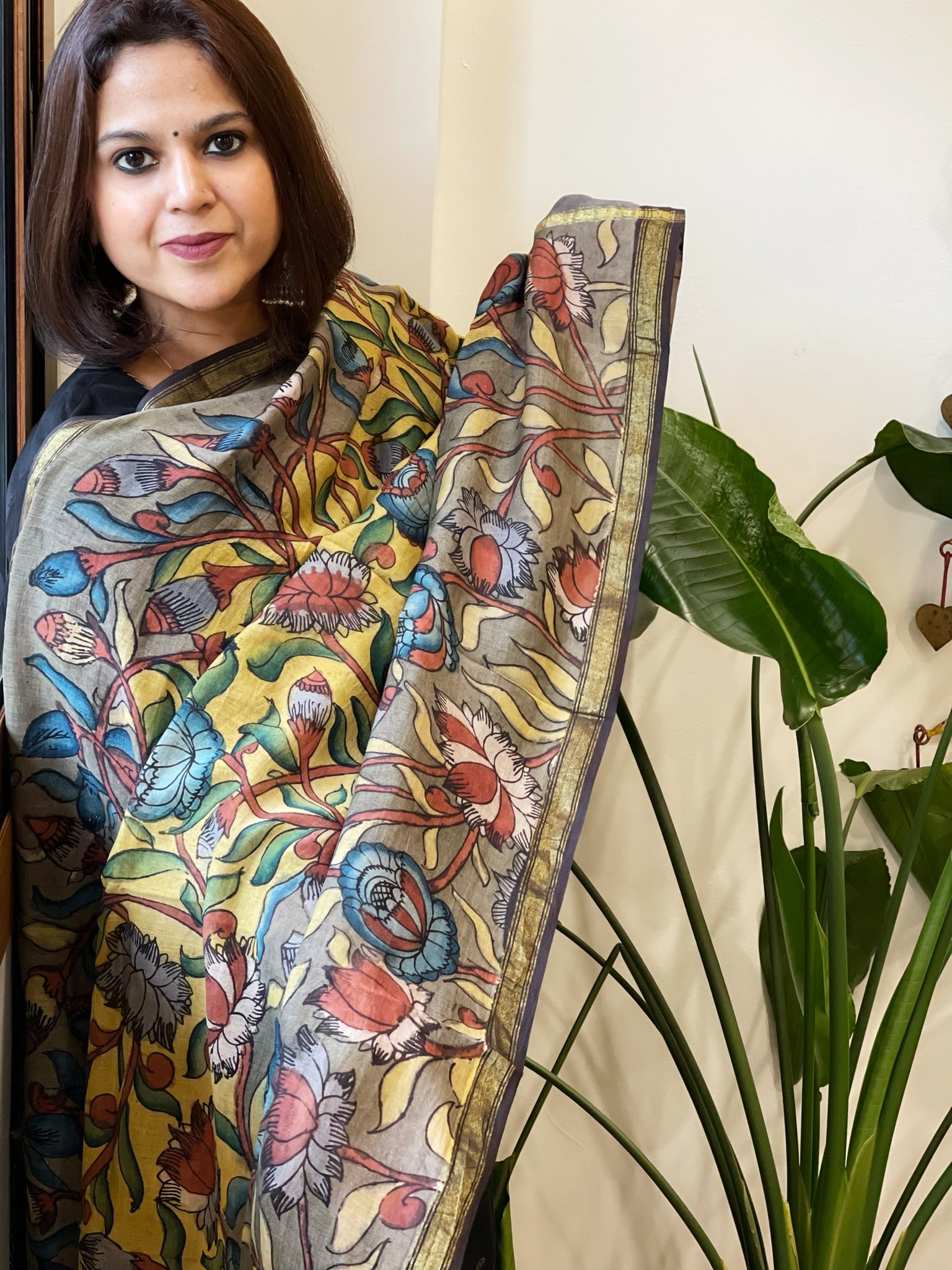 Note: Note: Product color may slightly vary due to photographic lighting sources or your screen/monitor setting. This product is handpainted and may have slight imperfections in the form of natural or milk base marks and a characterictic Kalamkari odour. True hallmark of an authentic handpainted Kalamkari.