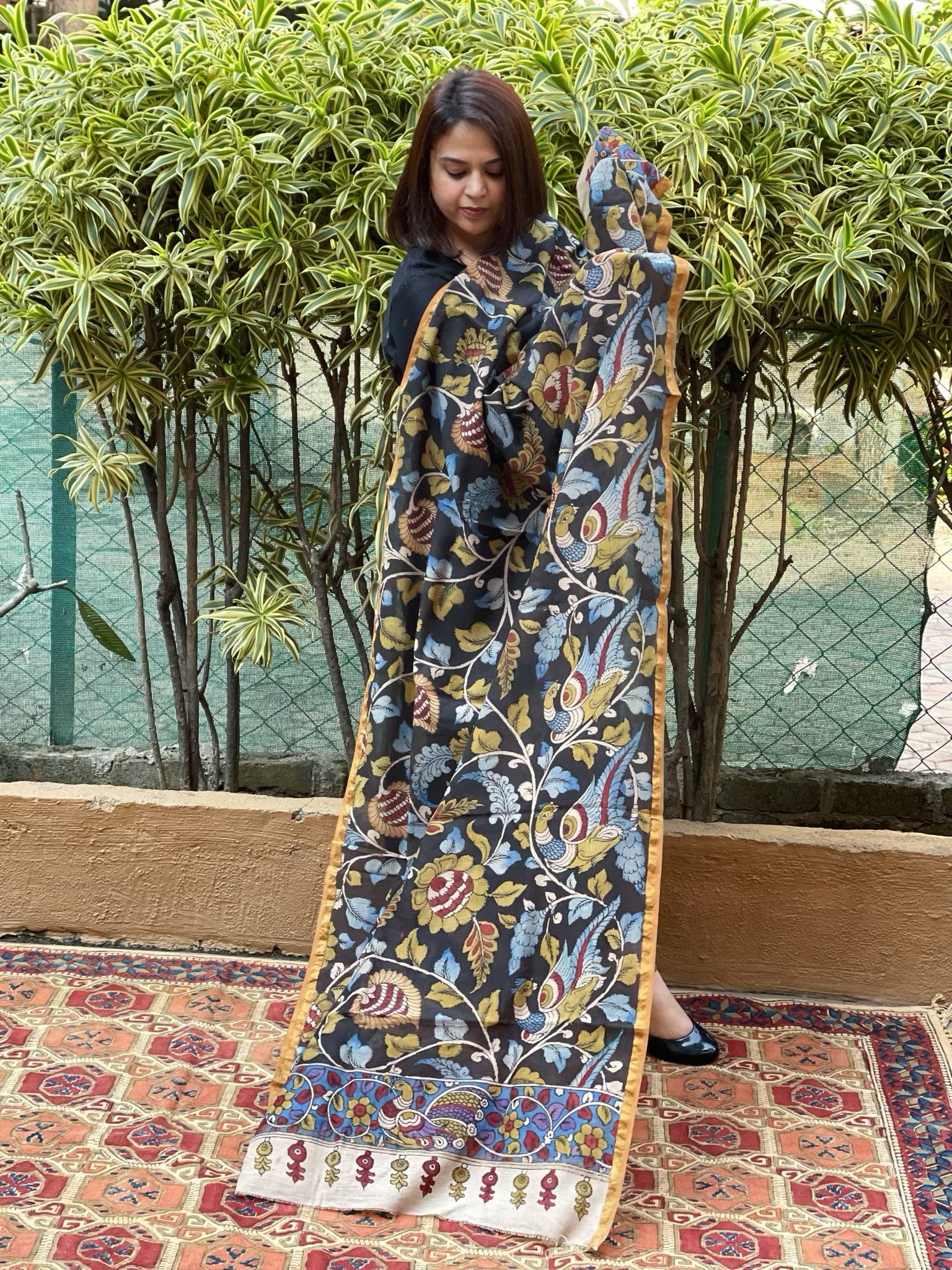 Handpainted Kalamkari Dupatta in Chanderi Silk