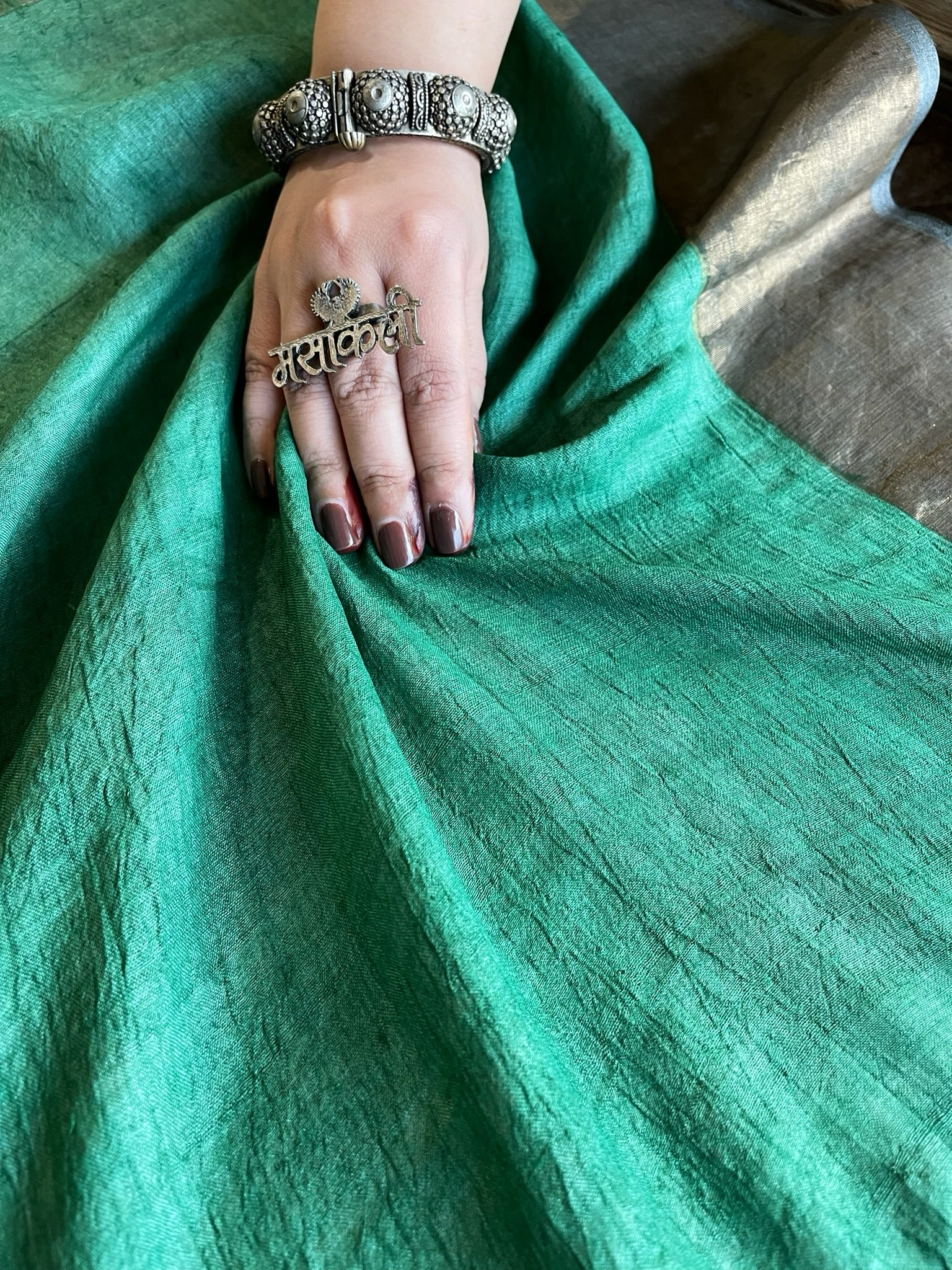 This exquisite saree combines the rich artistry of handpainted Kalamkari with the luxurious texture of pure tussar silk. Perfect for connoisseurs of fine fabrics and classical designs, this saree delivers sophisticated style for special occasions.
