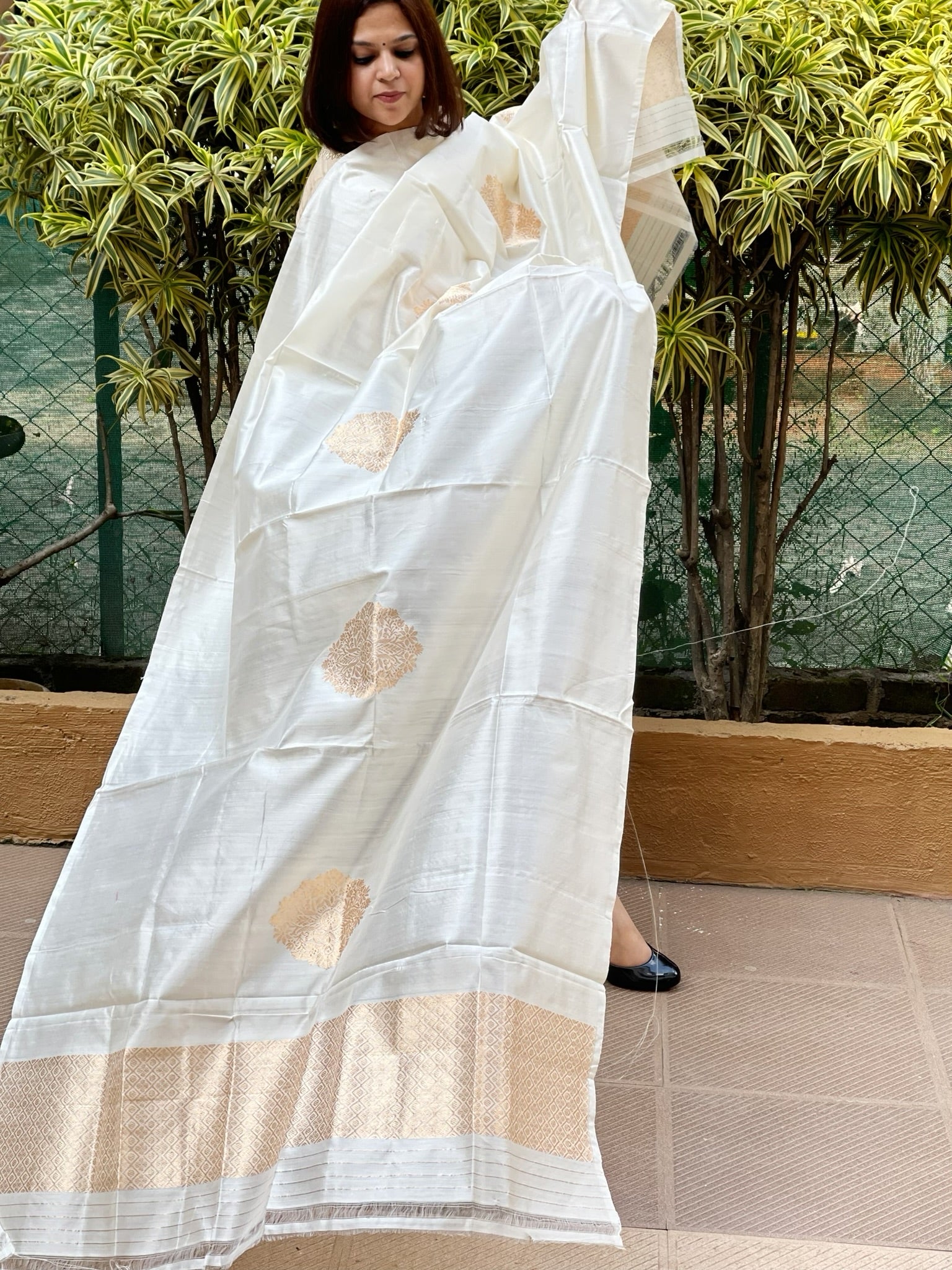 Ivory Handwoven Banarasi Dupatta in Pure Silk
