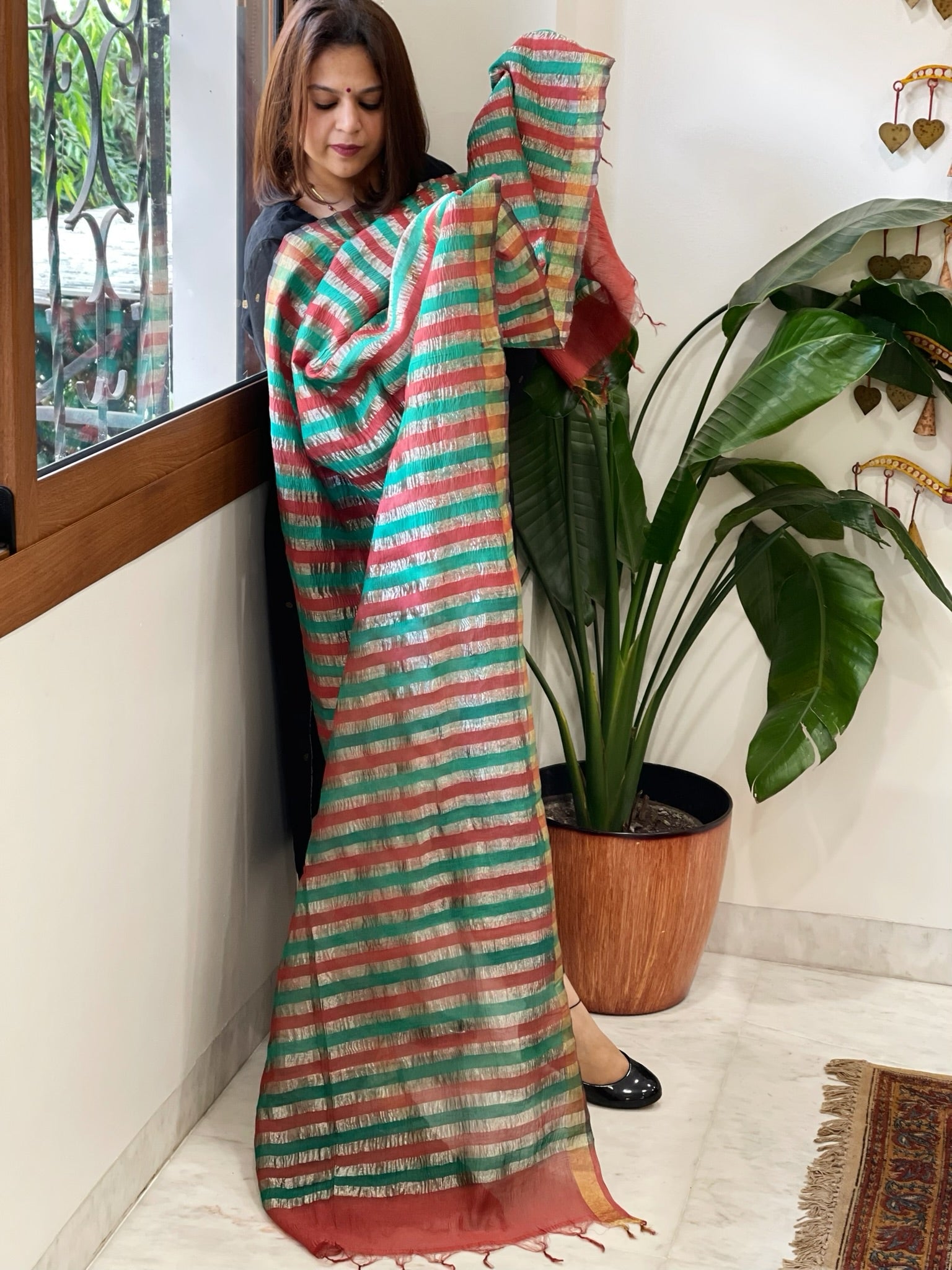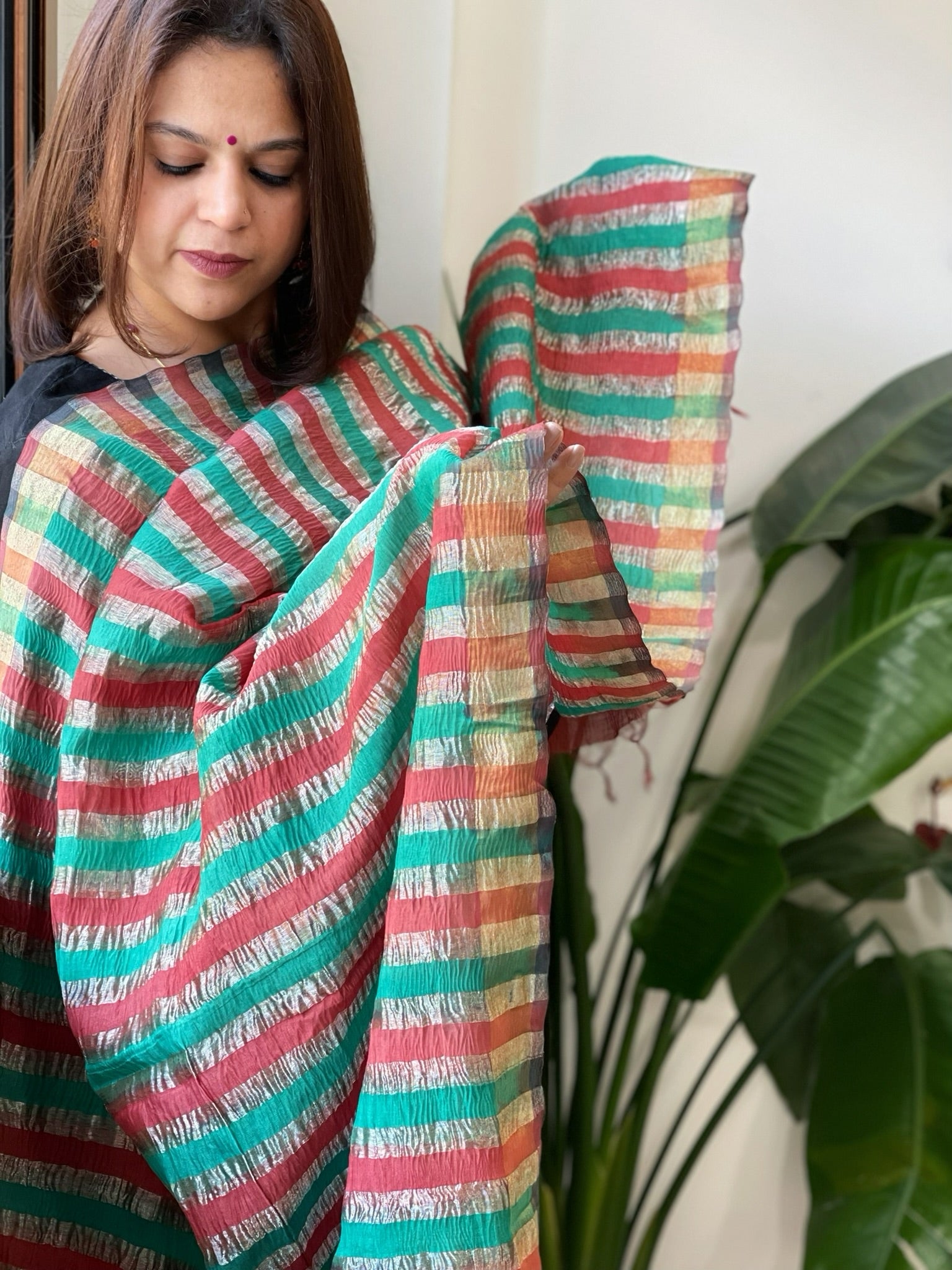 Crafted from exquisite Tissue Chanderi fabric. Elevate any outfit with its festive touch, making it perfect for special occasions. Expertly designed for a sophisticated and stylish look.
