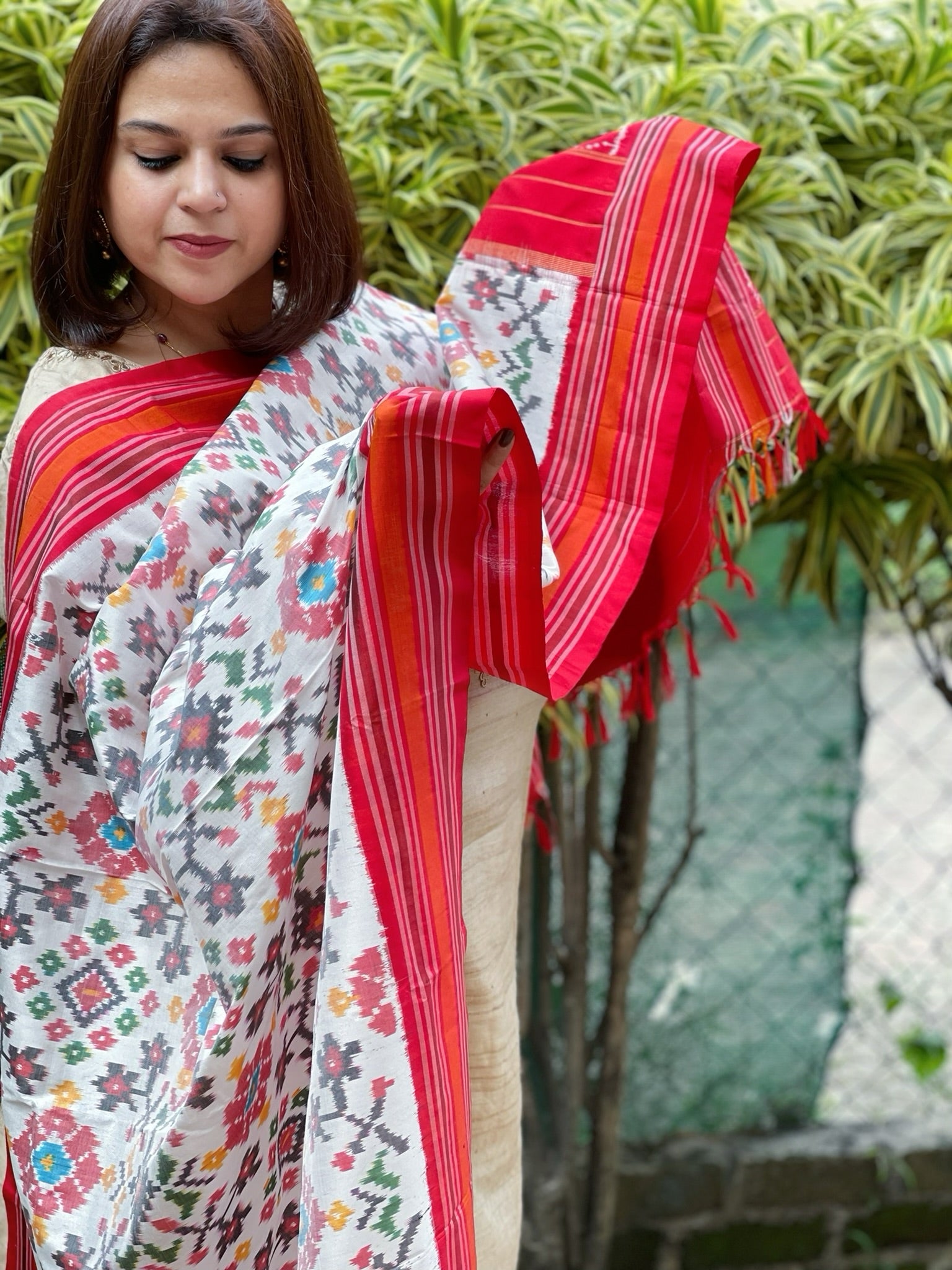 Ivory Handwoven Ikat Dupatta in Pure Silk