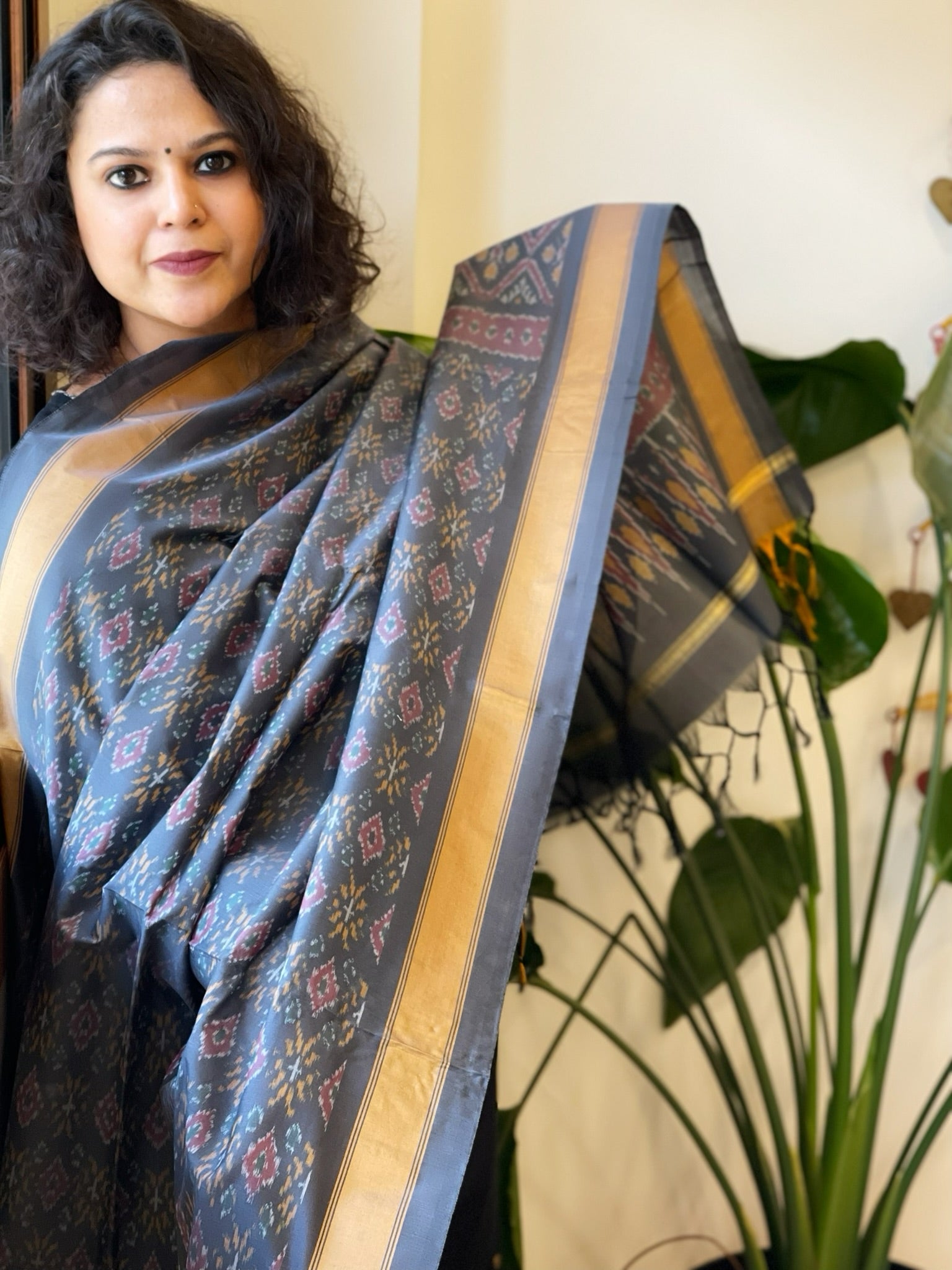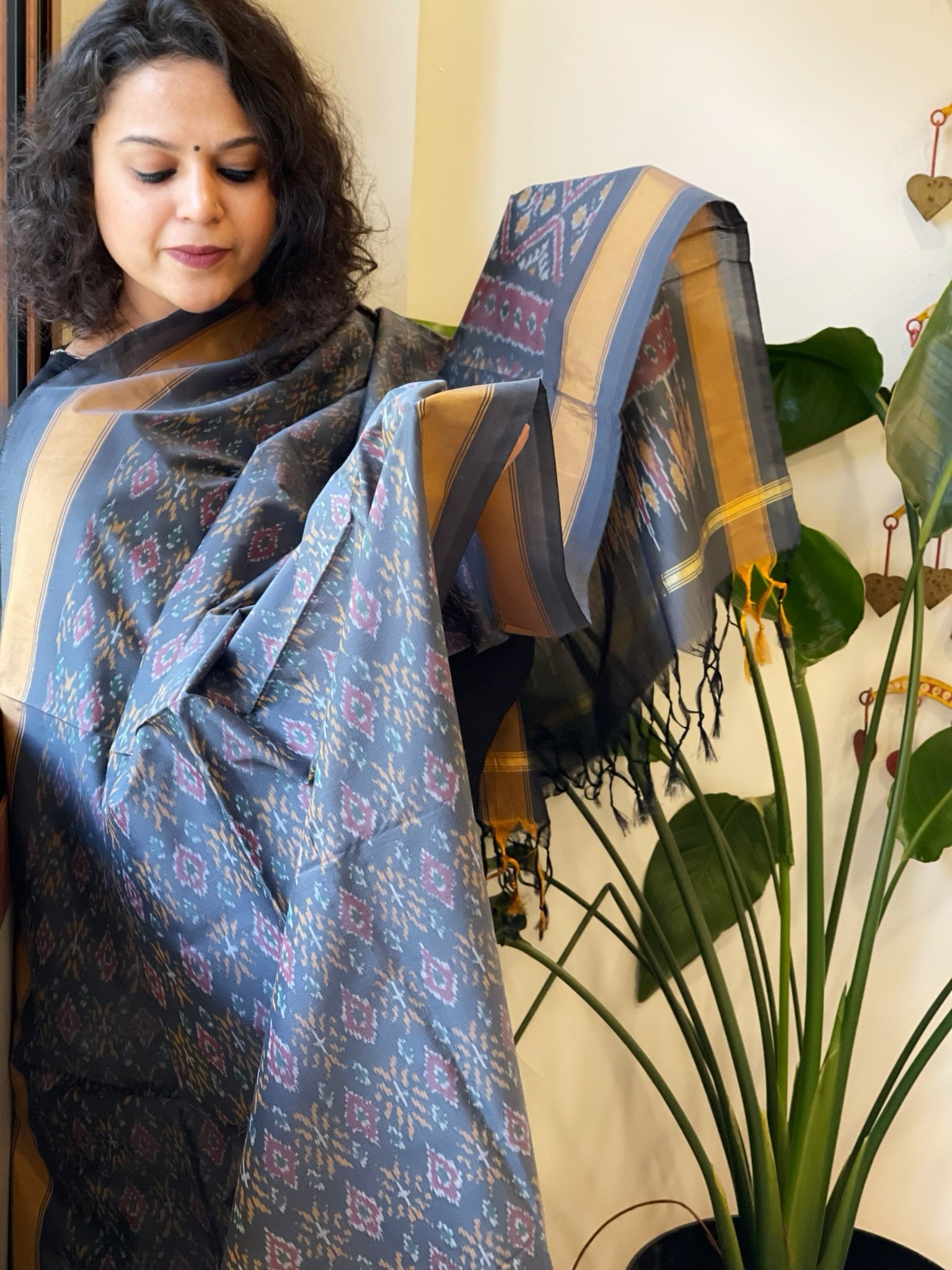 Slate Grey Handwoven Ikat Dupatta Pure Silk-Cotton
