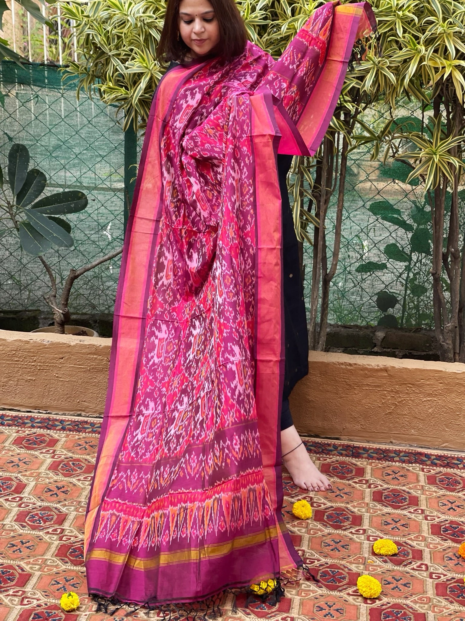Wine Handwoven Ikat Dupatta Pure Silk-Cotton