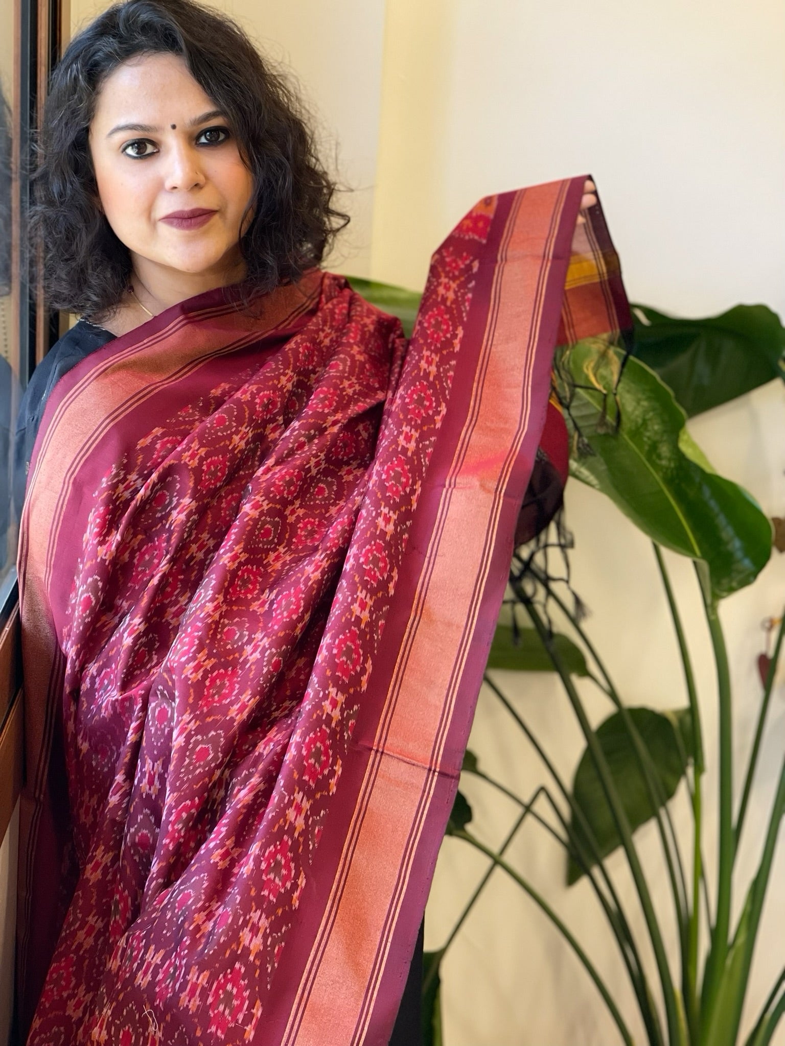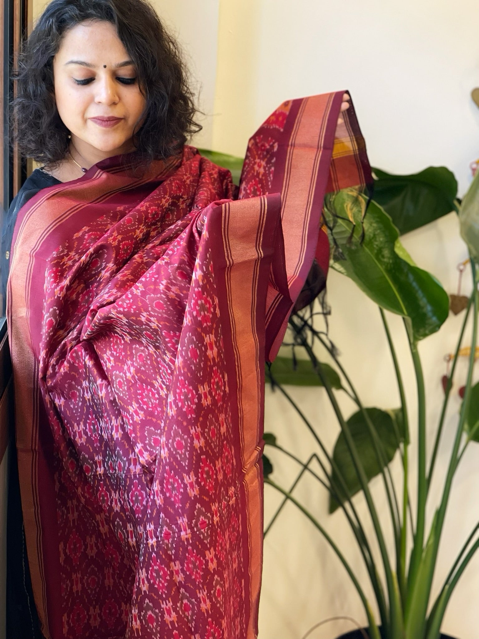 Maroon Handwoven Ikat Dupatta Pure Silk-Cotton