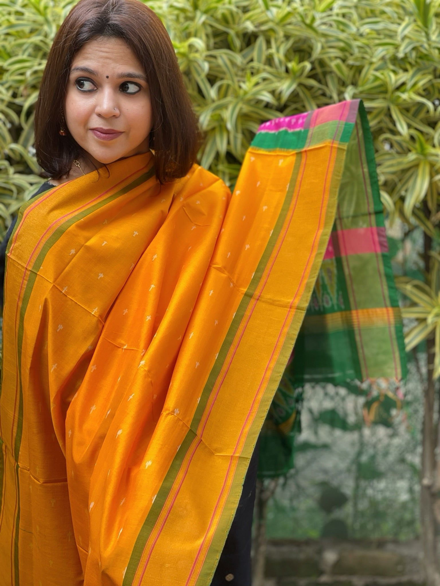 Yellow Handwoven Ikat Dupatta Pure Silk-Cotton