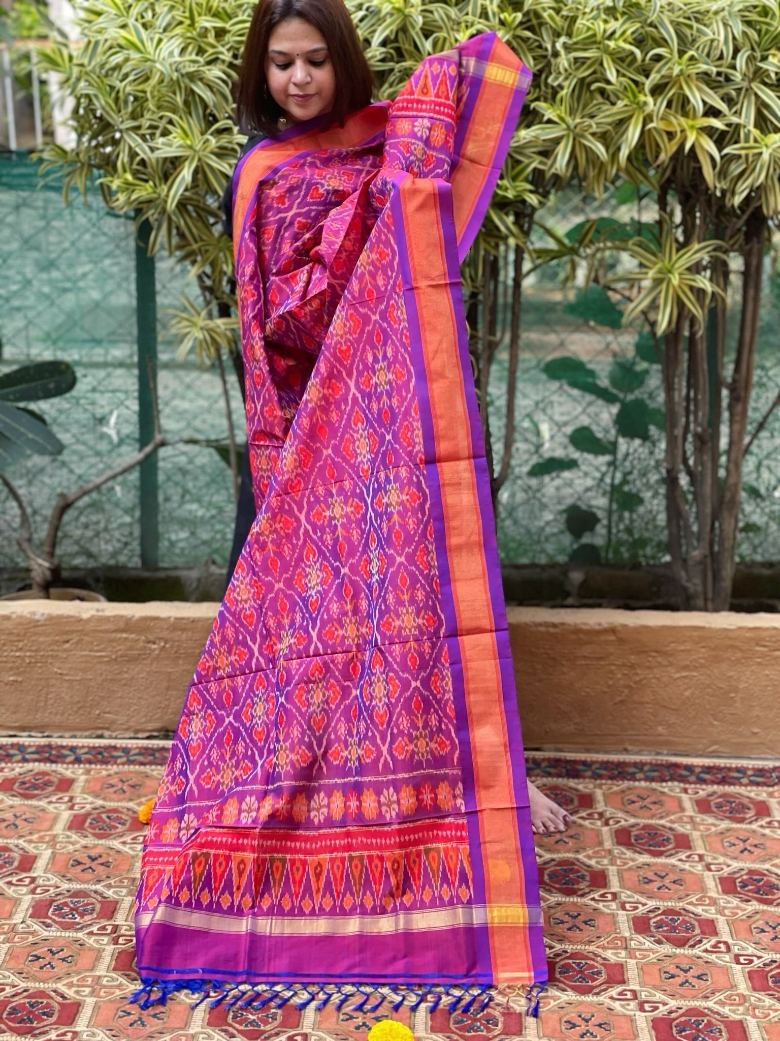 Purple Handwoven Ikat Dupatta Pure Silk-Cotton