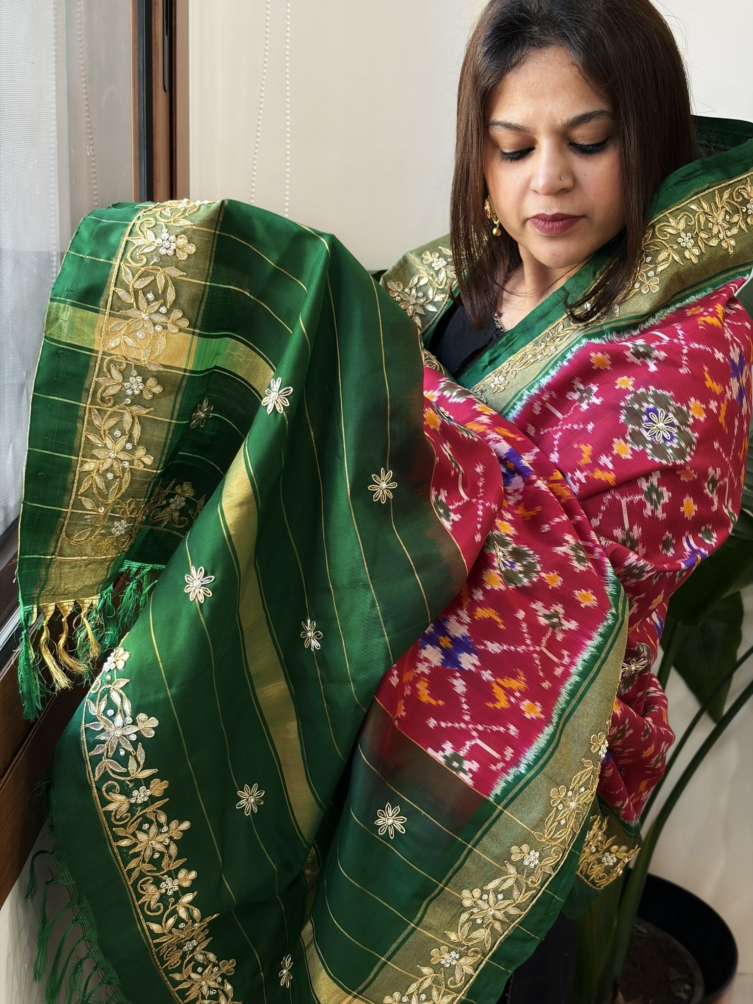 • Craft: Handwoven Ikat with Gotapatti Handwork