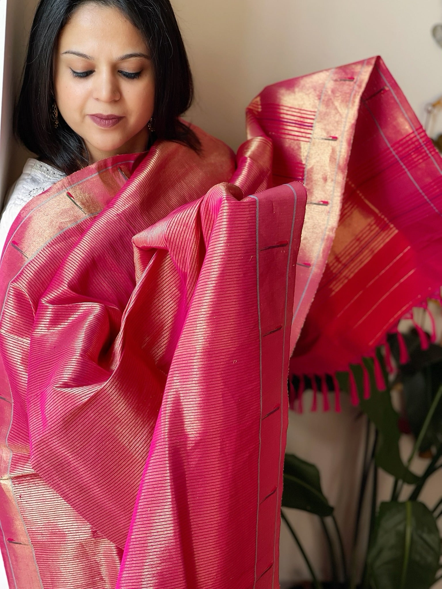 Expertly handwoven in pure silk, Masakalee's Paithani Dupatta showcases the exquisite craft of Maharashtra. With its luxurious texture and traditional design, it is the perfect addition to elevate any outfit. Experience the rich heritage and quality of this masterpiece.