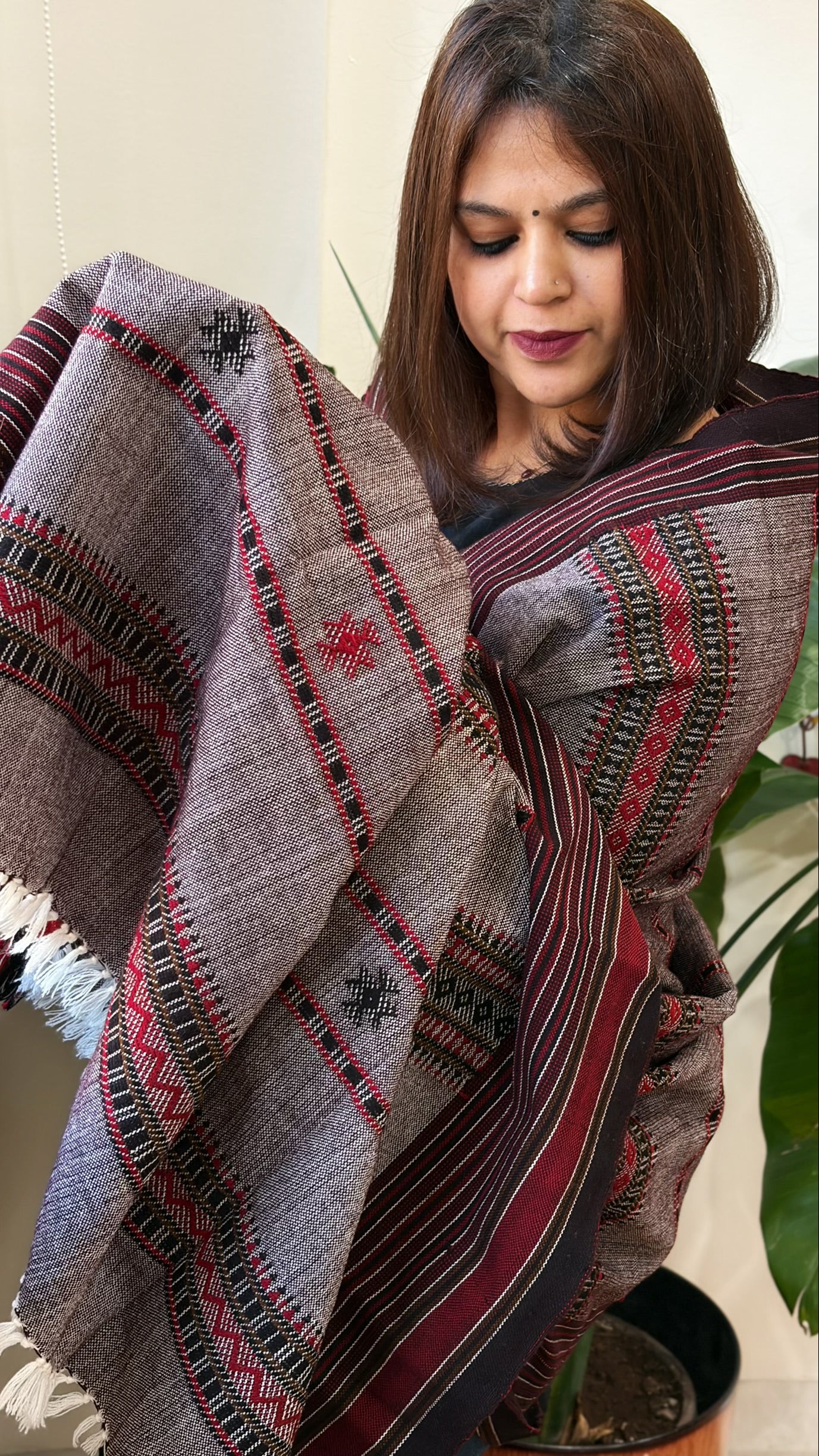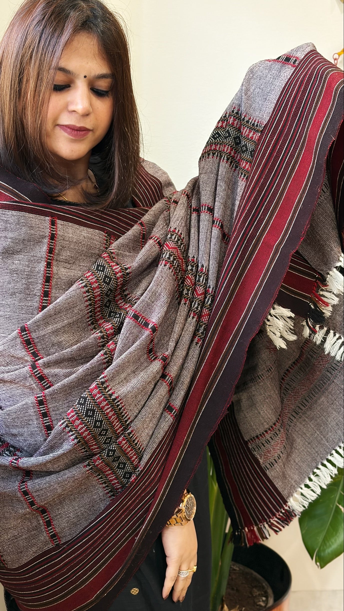 Experience the warmth and beauty of our Handwoven Woollen Shawl! Made with Pure Desi Wool and adorned with intricate Mirror Handwork, it's the perfect addition to your winter wardrobe. Stay cosy and stylish in any weather with this versatile shawl.