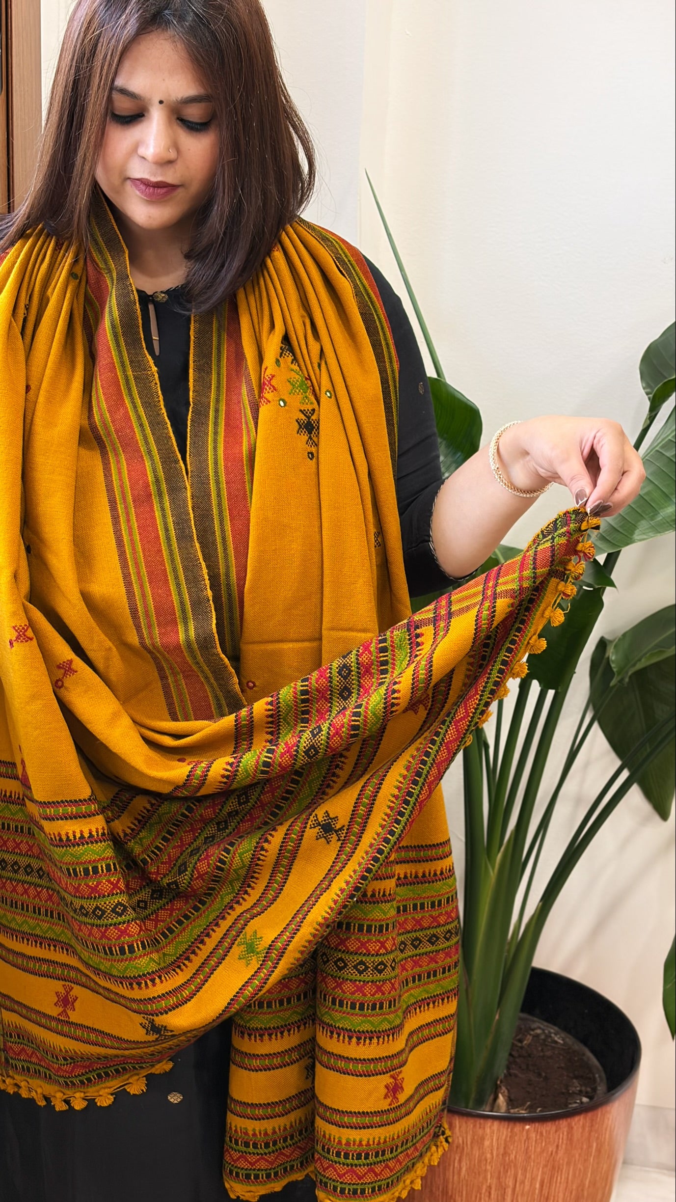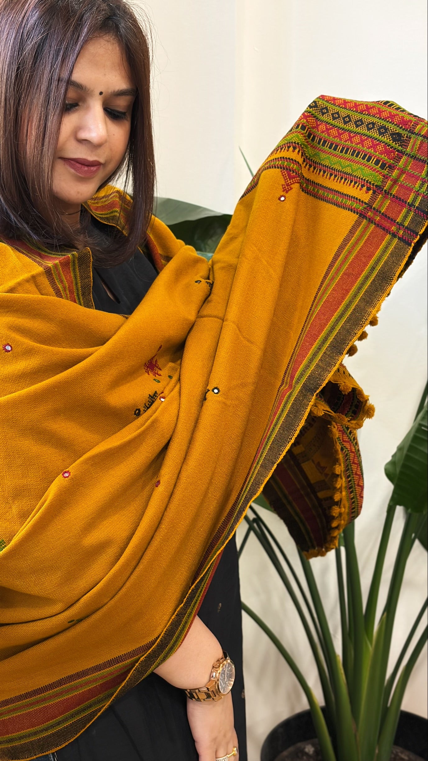 Mustard Handwoven Woollen Shawl with Mirror Handwork