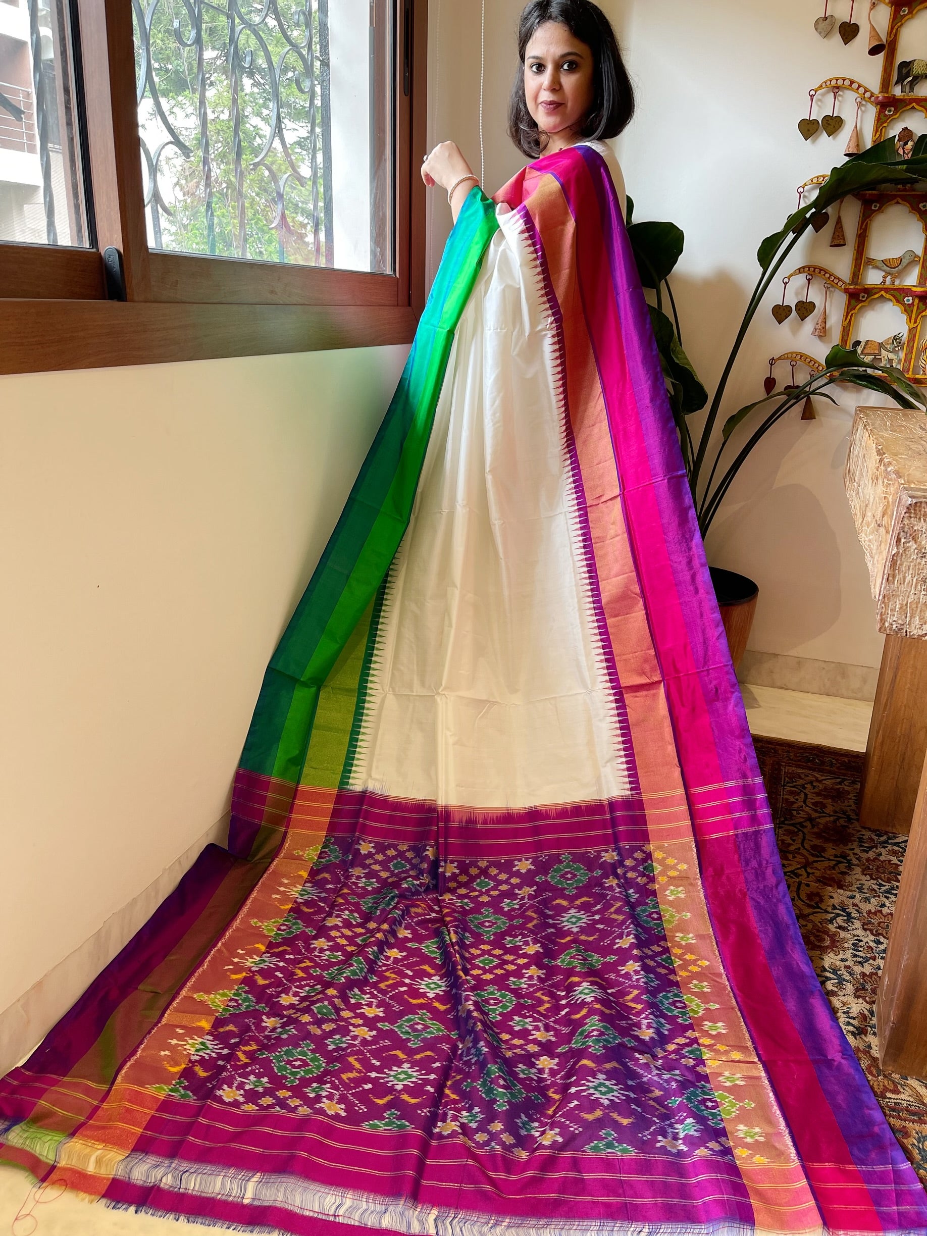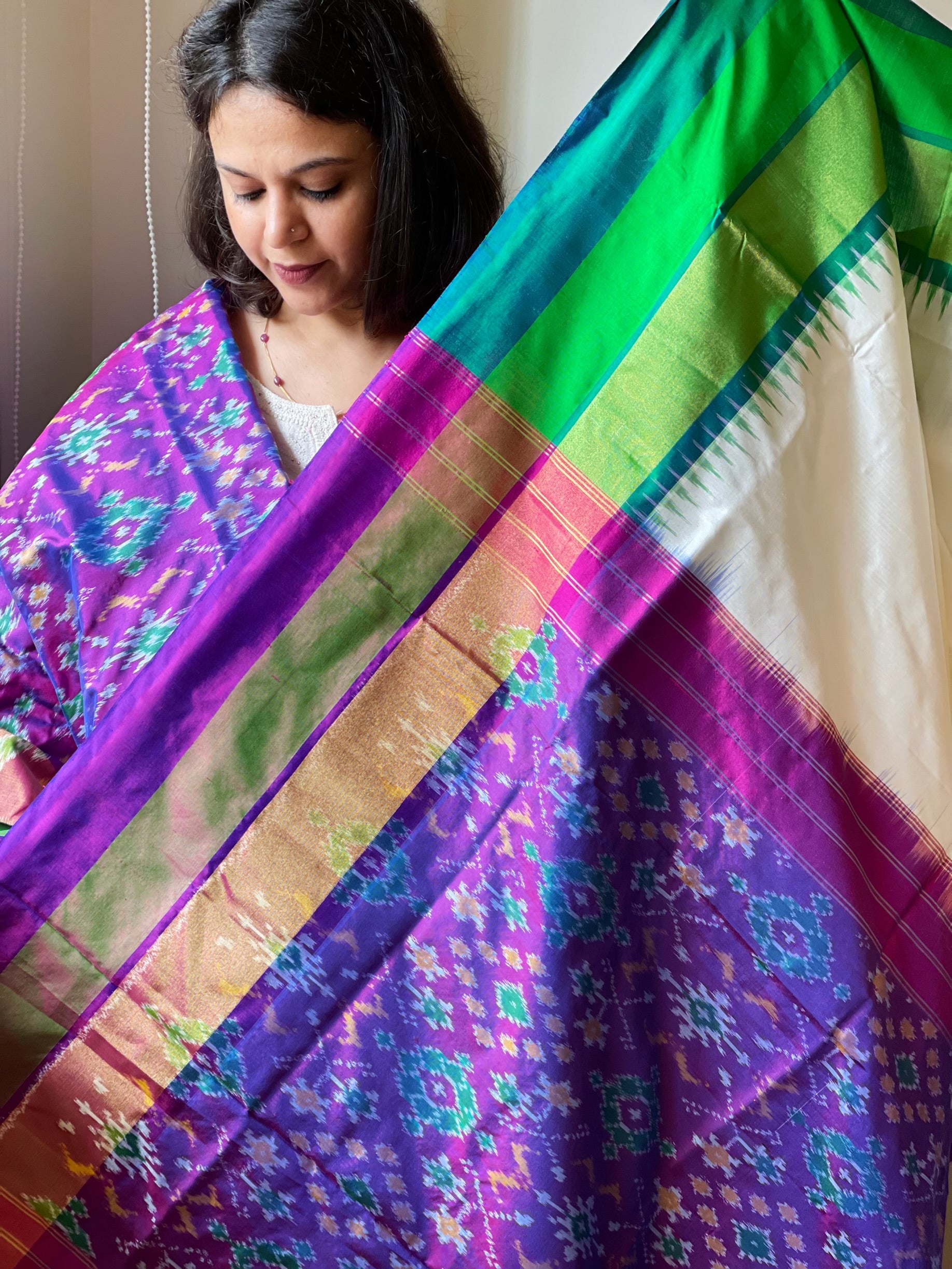 Craft: Handwoven Ikat Patola Saree with Ganga Jamuna Border