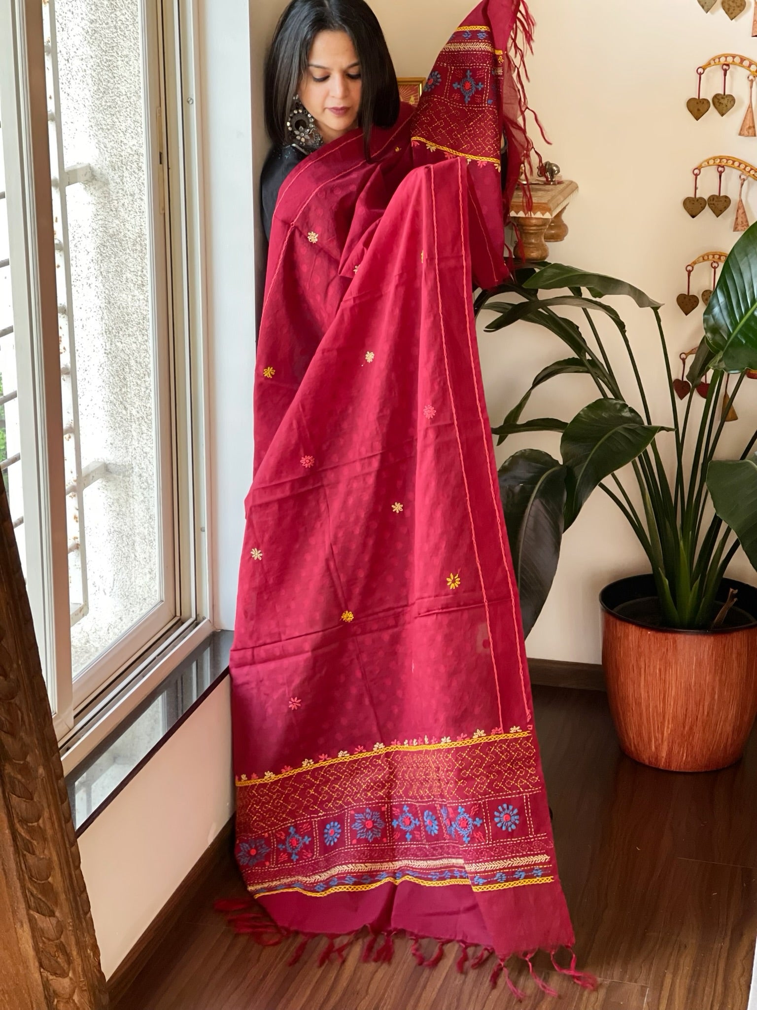 This Handwoven Cotton Dupatta showcases intricate Self and Lambani Handwork, adding a unique touch to the exclusive design. Made from high-quality cotton, it offers both comfort and style. Elevate any outfit with this expertly crafted piece.