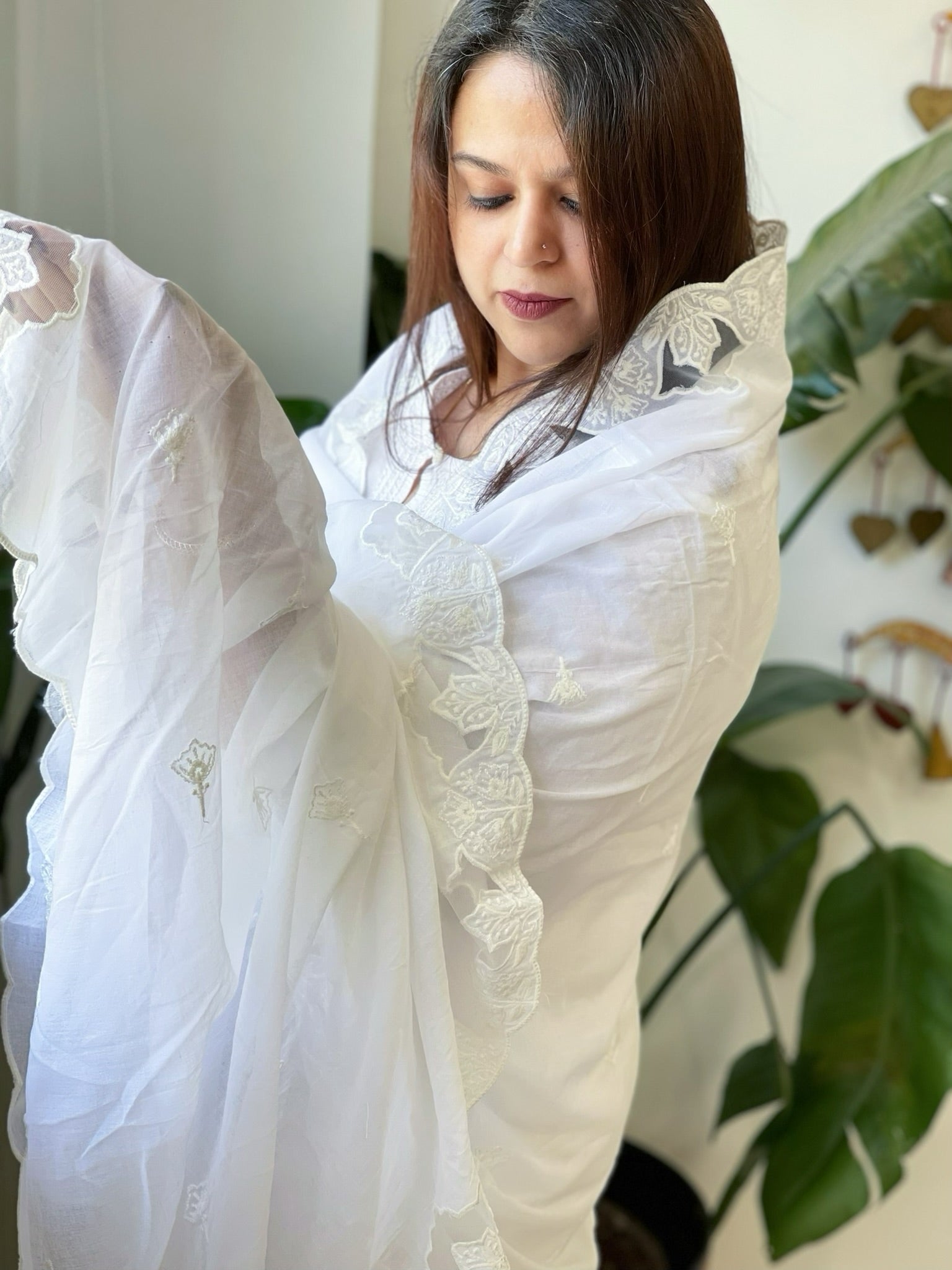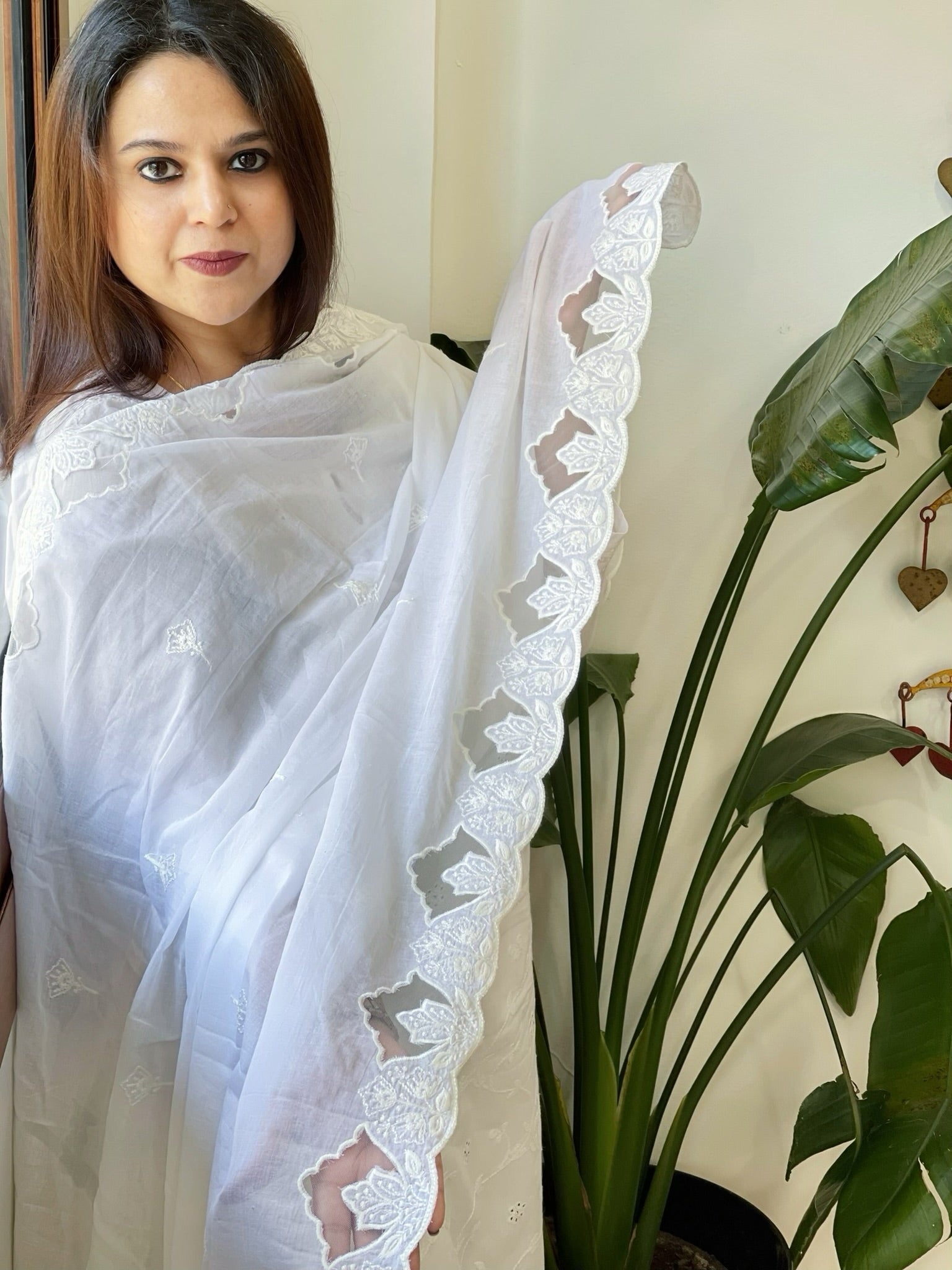 This Cotton Dupatta with Cut Work and exudes summery and lite vibes. Made from high-quality cotton, it features delicate embroidery that adds a touch of elegance. Perfect for any occasion, this dupatta is both stylish and comfortable.