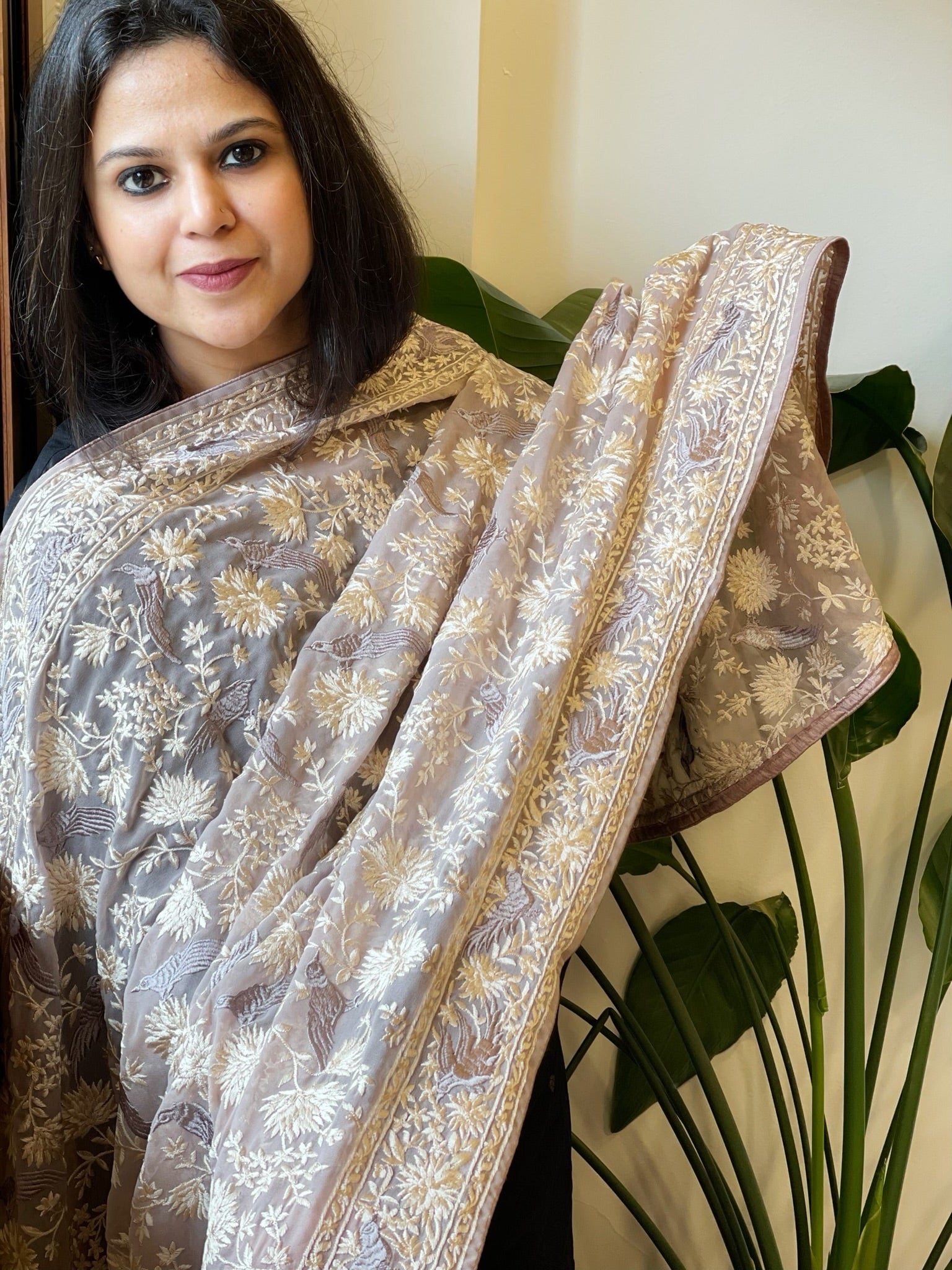 Lite Lavender Parsi Gara Embroidery Dupatta in Georgette