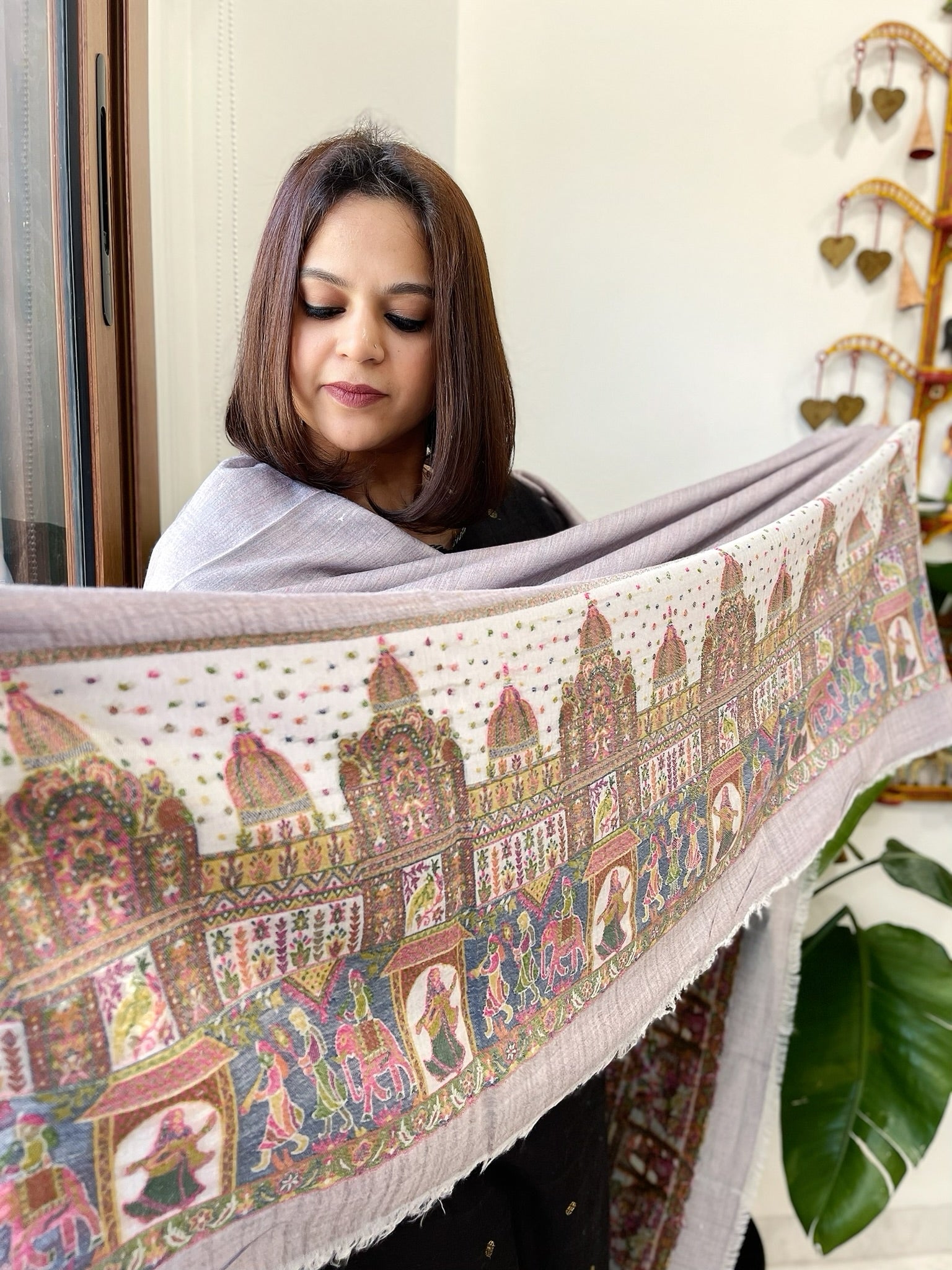 Purplish Grey Pashmina Shawl with Shehnai Baraat Kaani Pallu