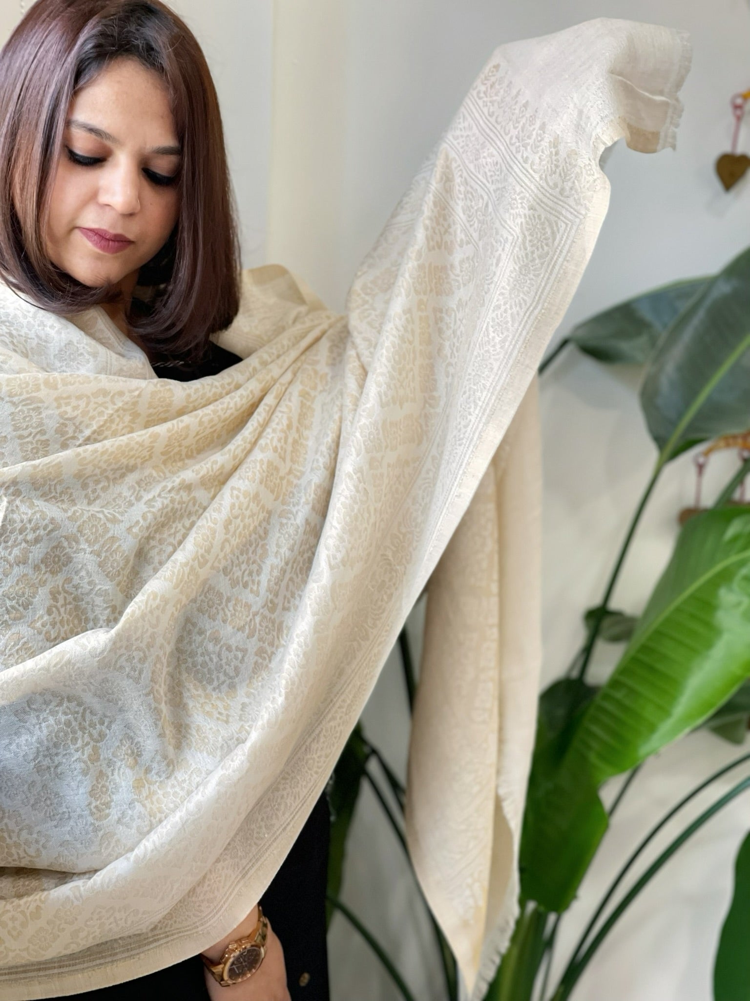 Experience a luxurious blend of warmth and style with our gorgeous Pashmina Shawl with Zari. Made from pure wool, these stoles are not only warm and cosy, but also lightweight and perfect for winter weather. Elevate your winter outfits with the intricate zari detailing.