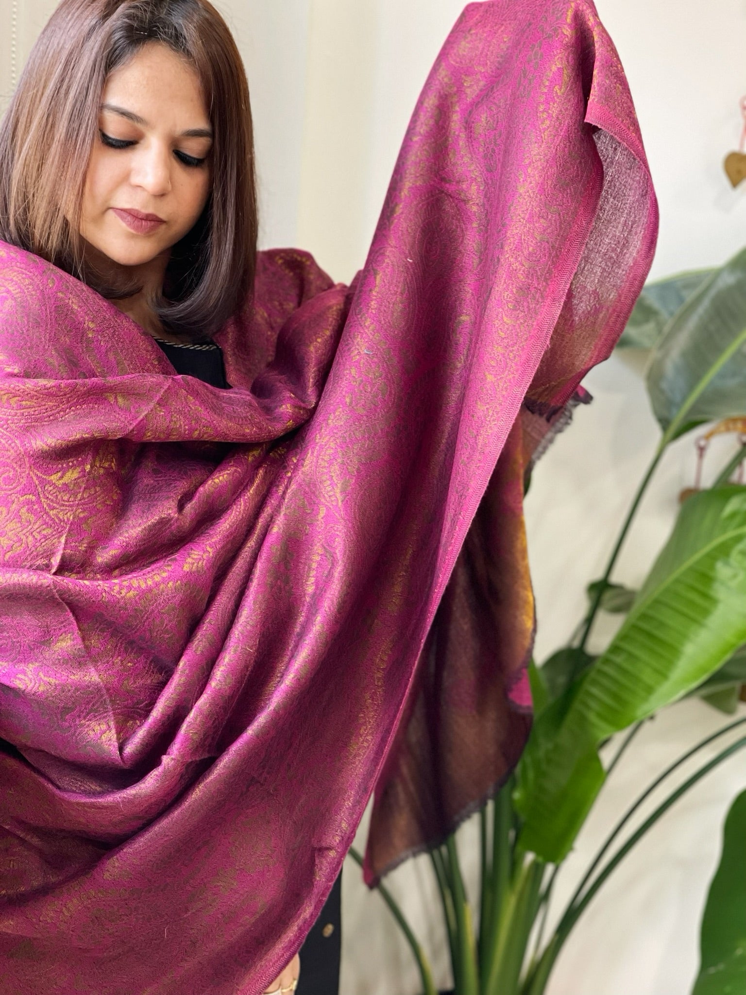 Experience a luxurious blend of warmth and style with our gorgeous Pashmina Shawl with Zari. Made from pure wool, these stoles are not only warm and cosy, but also lightweight and perfect for winter weather. Elevate your winter outfits with the intricate zari detailing.