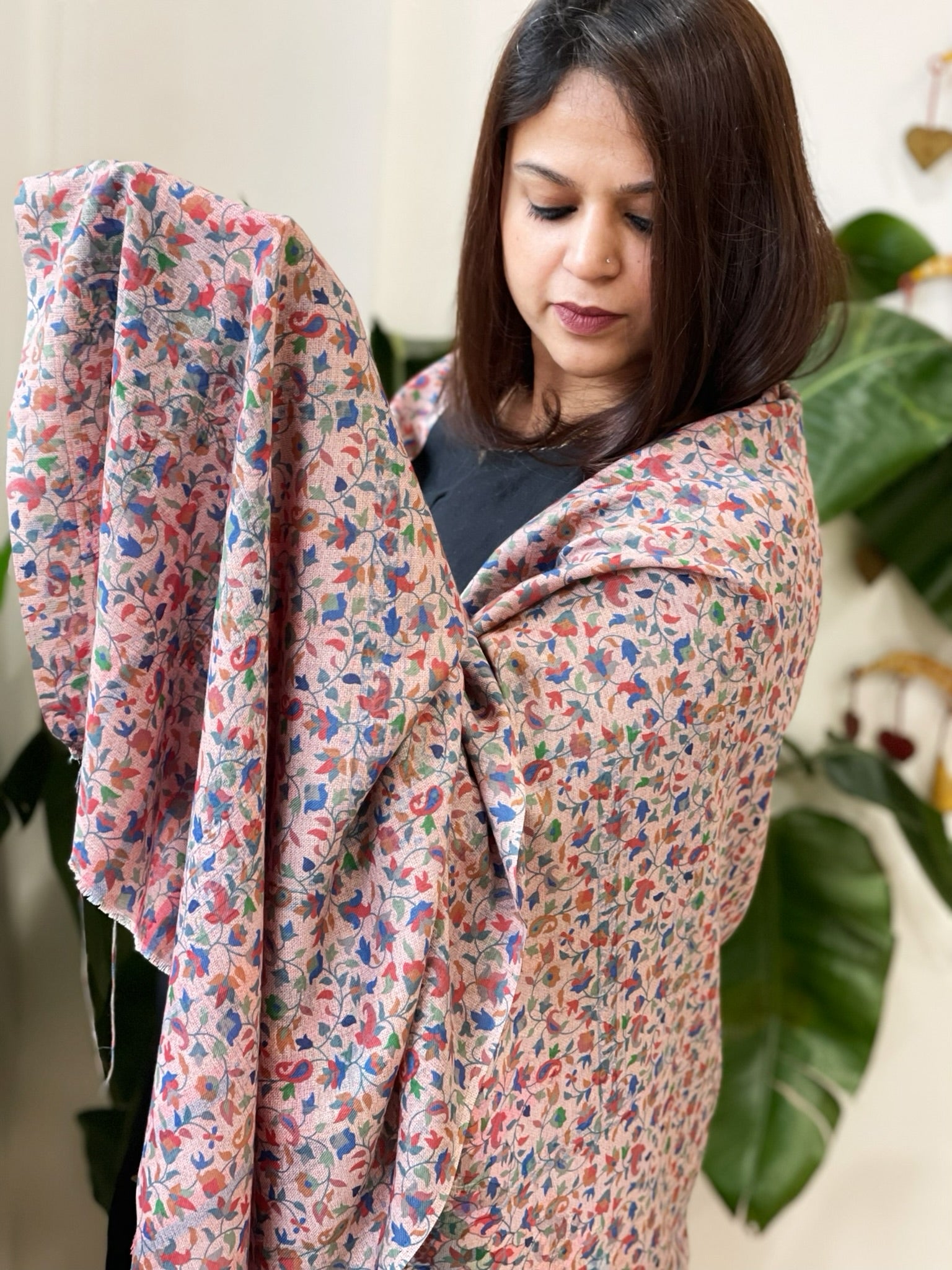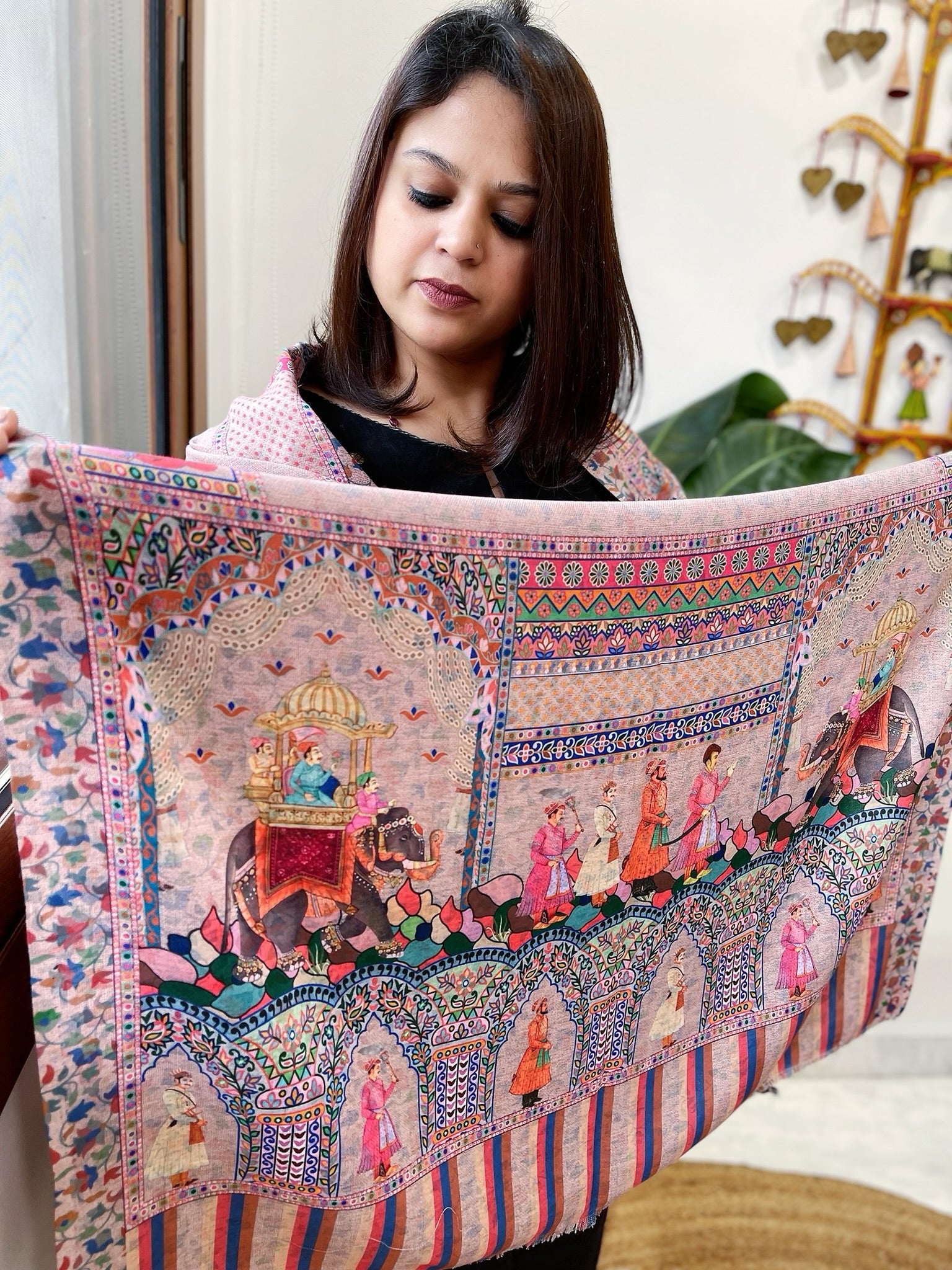 Lite Pink with Brown Tinge Printed Reversible Kalamkari Stoles in Premium Wool