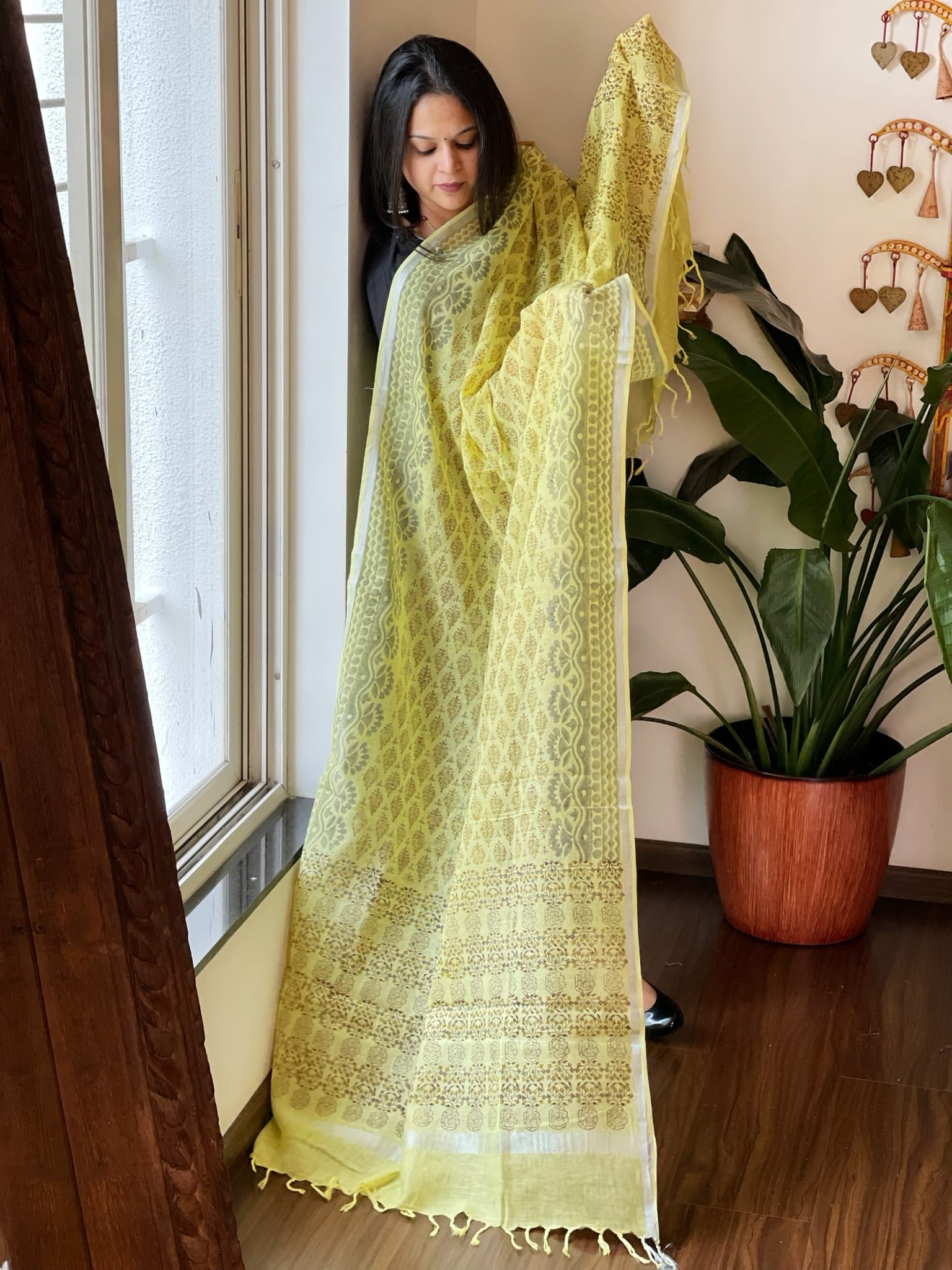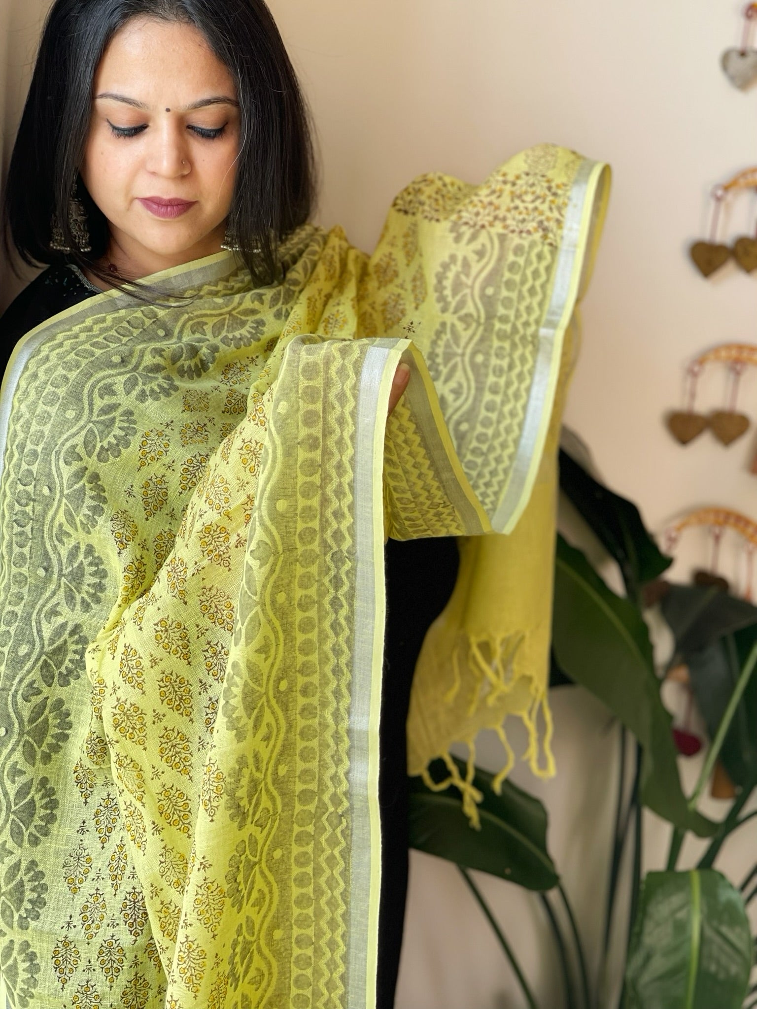 Discover the perfect addition to your summer wardrobe with our Pure Linen Handblock Printed Dupatta. Made from lightweight and breathable pure linen. Stay stylish and cool with these versatile dupattas.