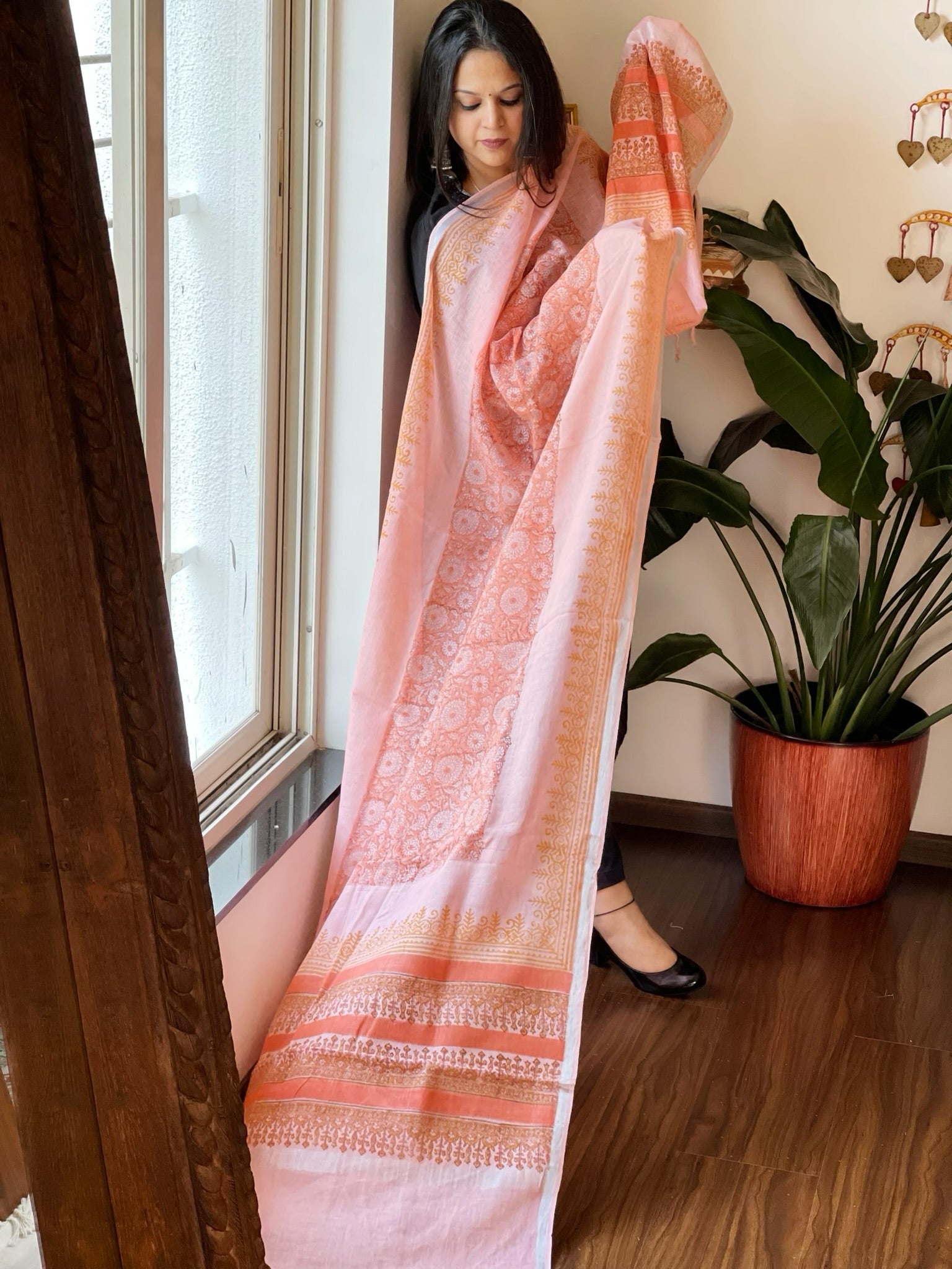 Discover the perfect addition to your summer wardrobe with our Pure Linen Handblock Printed Dupatta. Made from lightweight and breathable pure linen. Stay stylish and cool with these versatile dupattas.