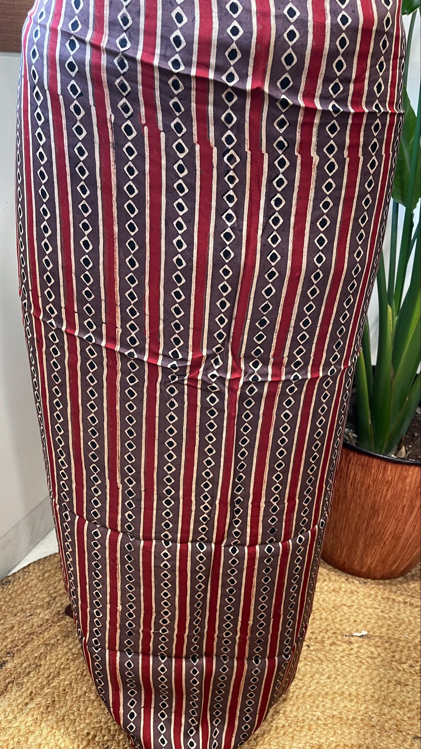 Presenting this sophisticated three-piece suit set, crafted from modal silk that drapes with effortless elegance. Each piece features authentic Ajrakh handblock printing and intricate sequin embroidery detailing. Perfect for festive occasions, celebrations, or making a distinctive style statement, this set combines traditional craftsmanship with contemporary silhouettes.
