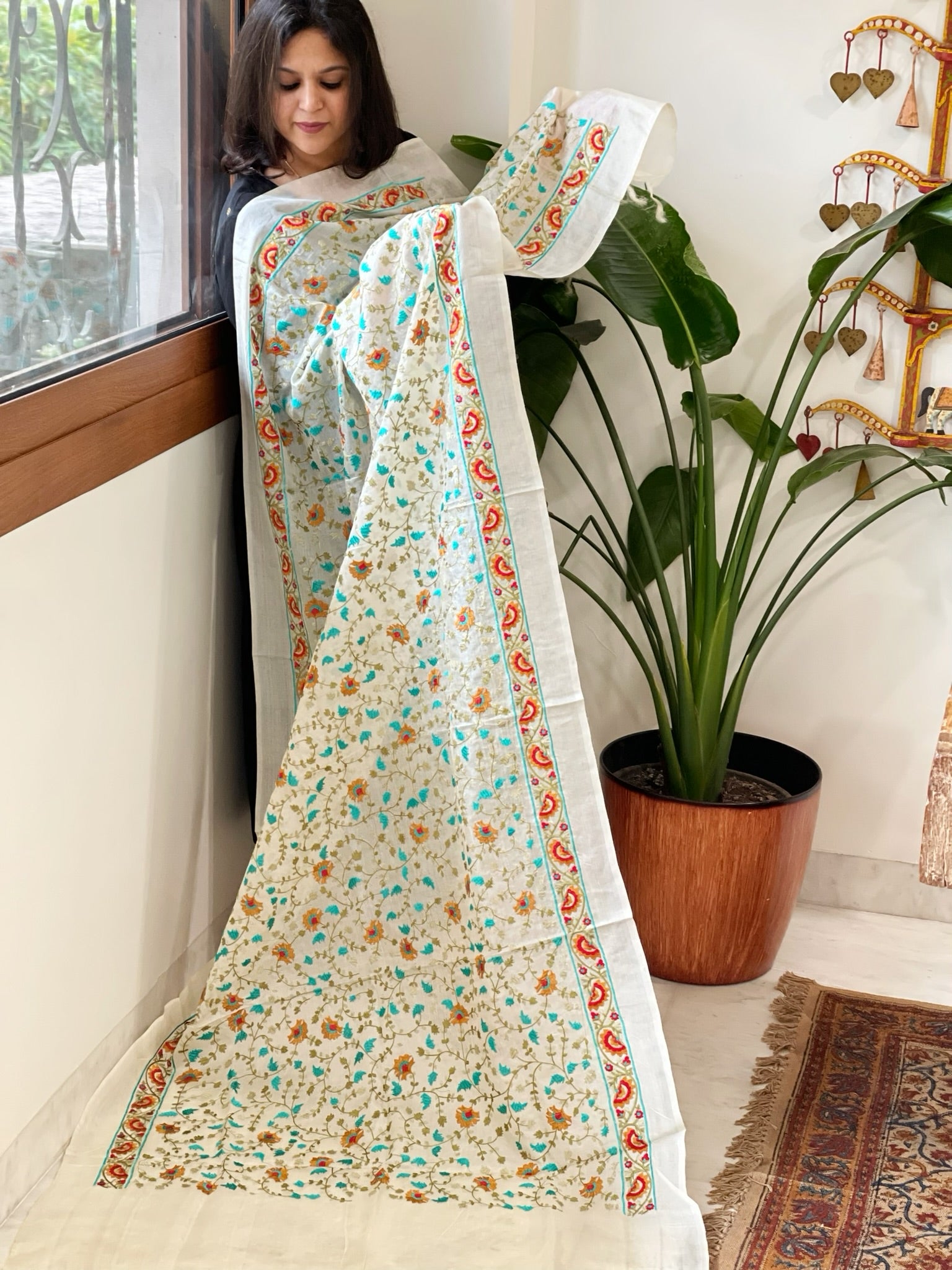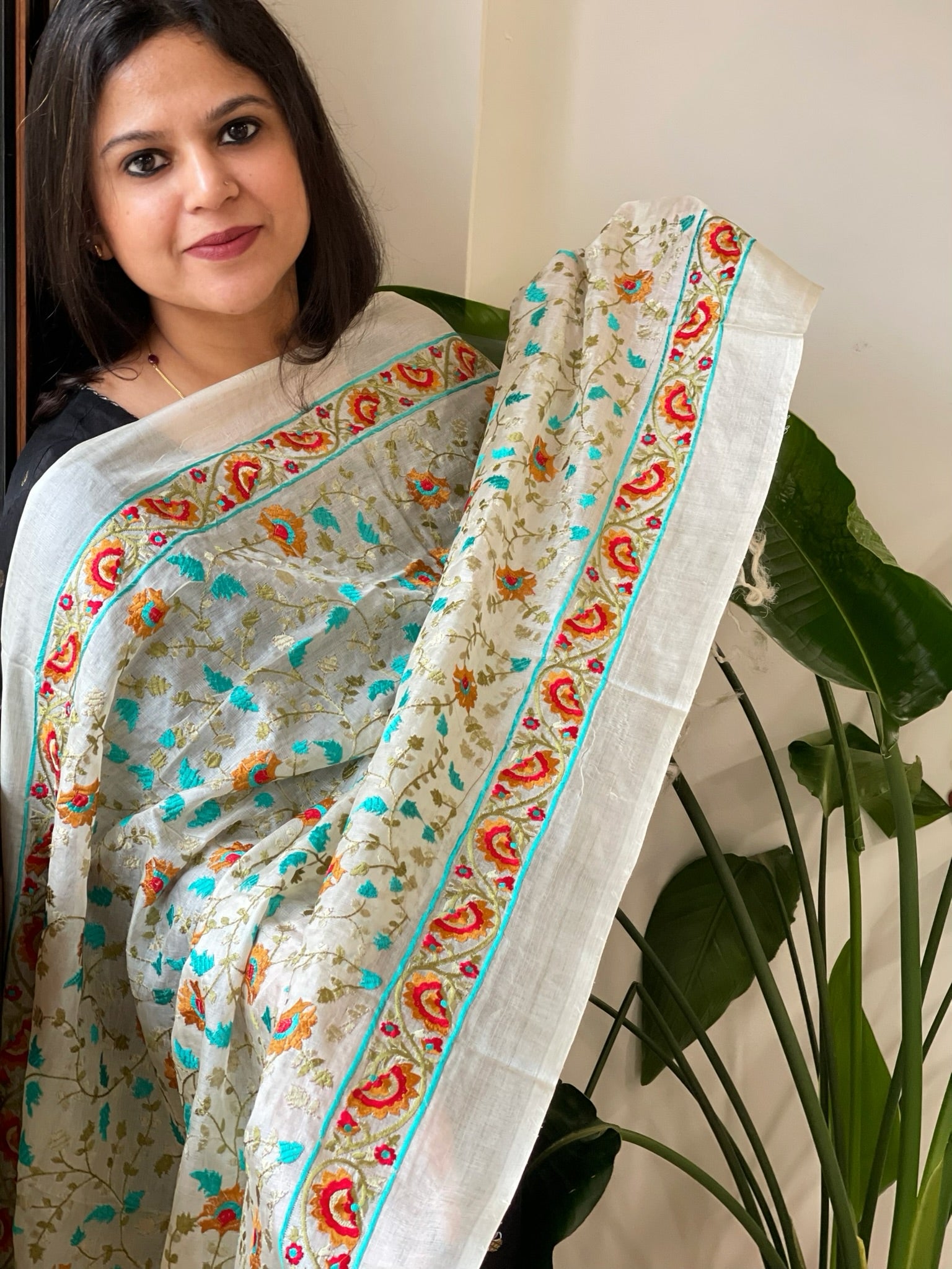 Tussar Silk dupatta with Thread Jaal Embroidery