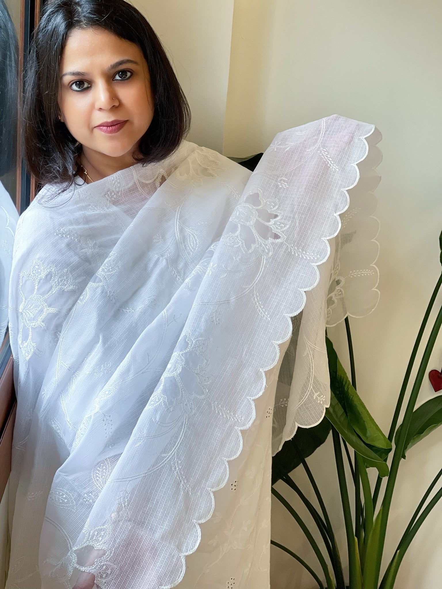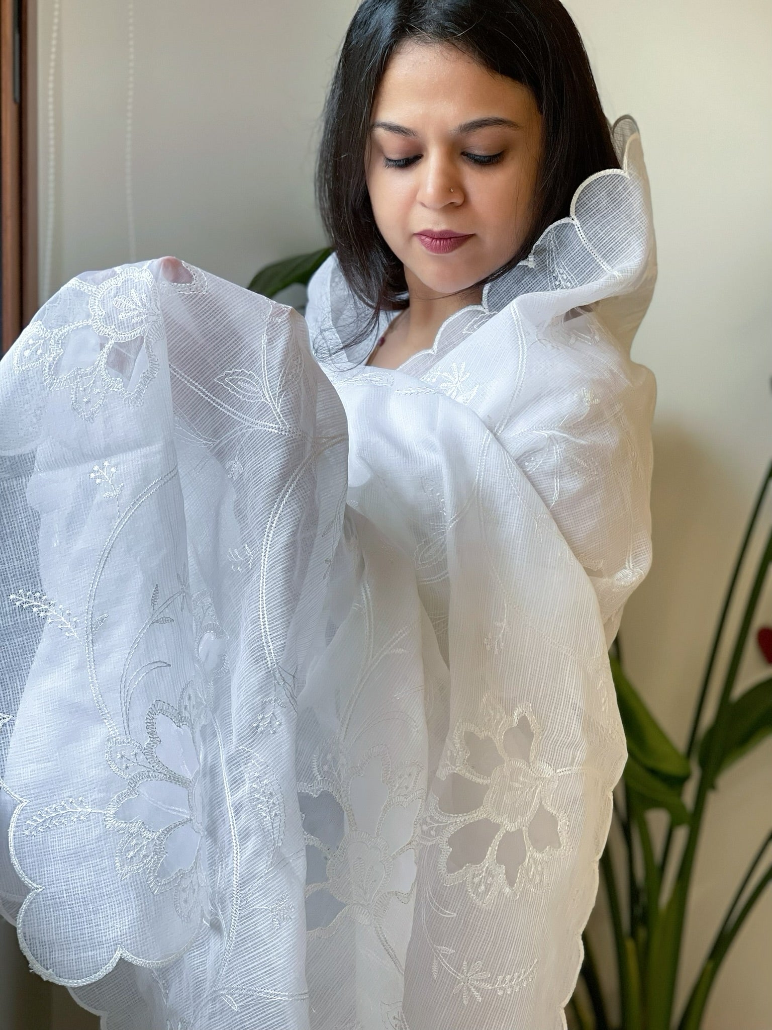 This Jaal Cut Work Chanderi Dupatta with exudes summery and lite vibes. Made from high-quality Kota Cotton, it features delicate embroidery that adds a touch of elegance. Perfect for any occasion, this dupatta is both stylish and comfortable.