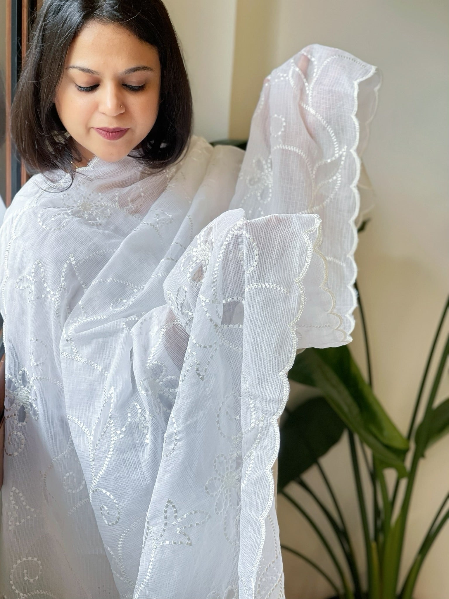 This Jaal Cut Work Chanderi Dupatta with exudes summery and lite vibes. Made from high-quality Kota Cotton, it features delicate embroidery that adds a touch of elegance. Perfect for any occasion, this dupatta is both stylish and comfortable.