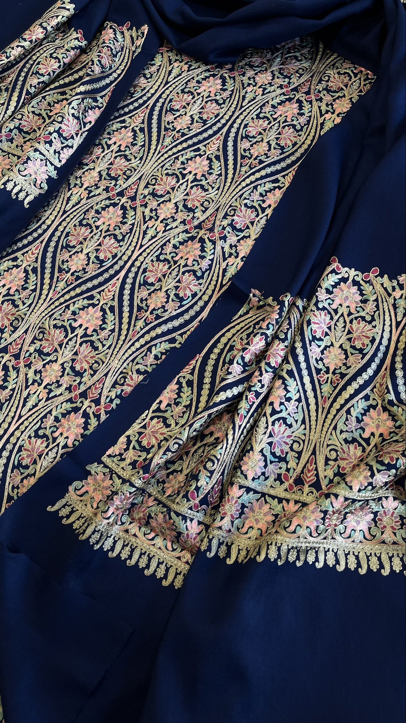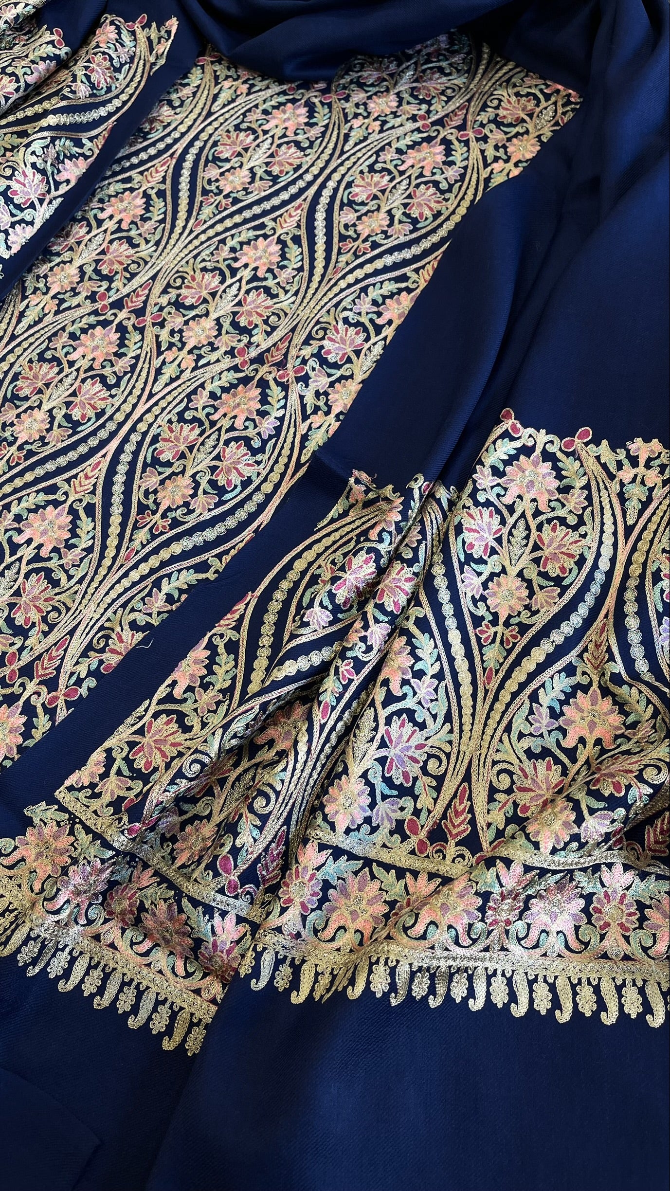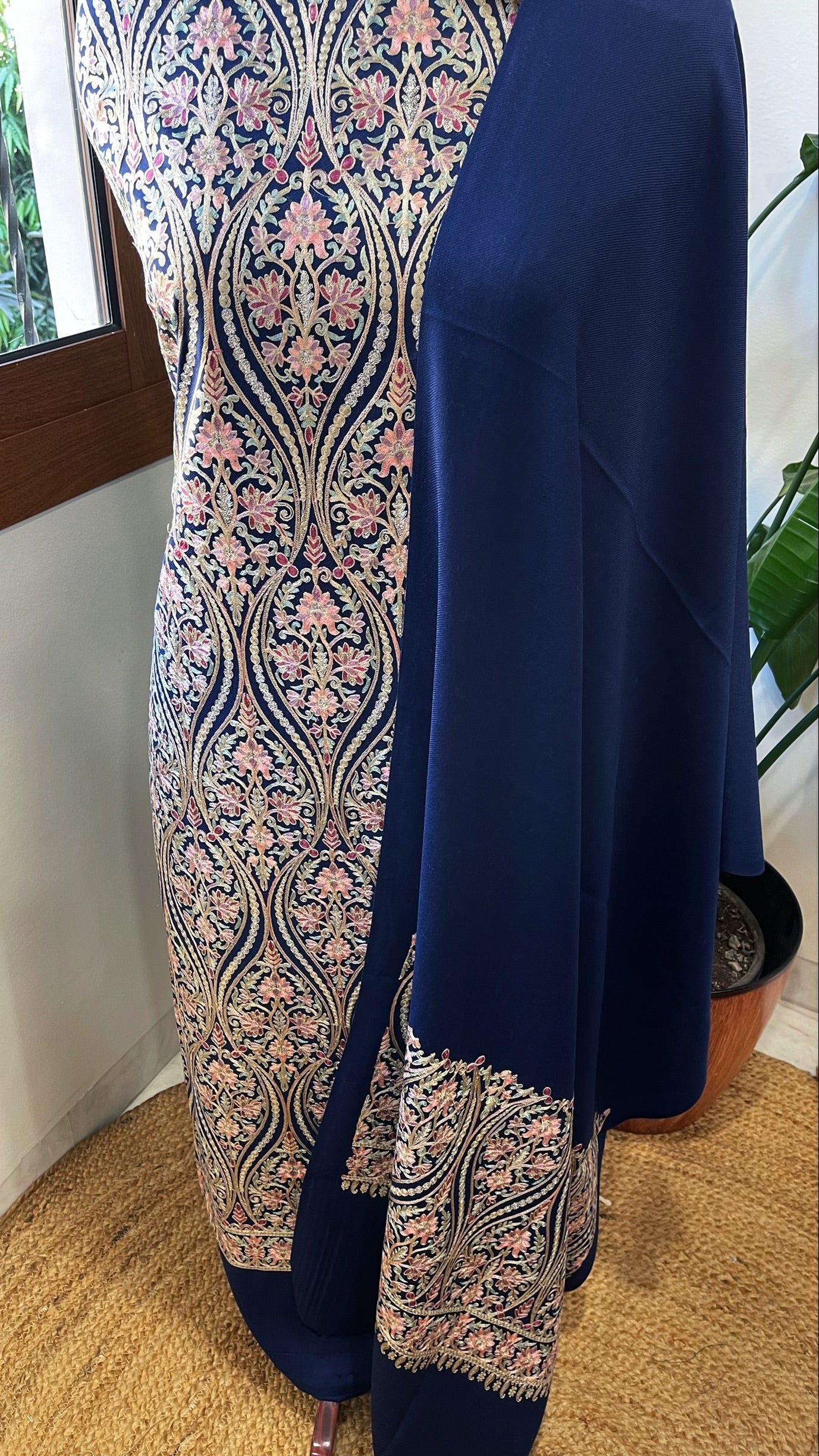 Navy Winter Suit Set with Aari Work in Pashmina Wool